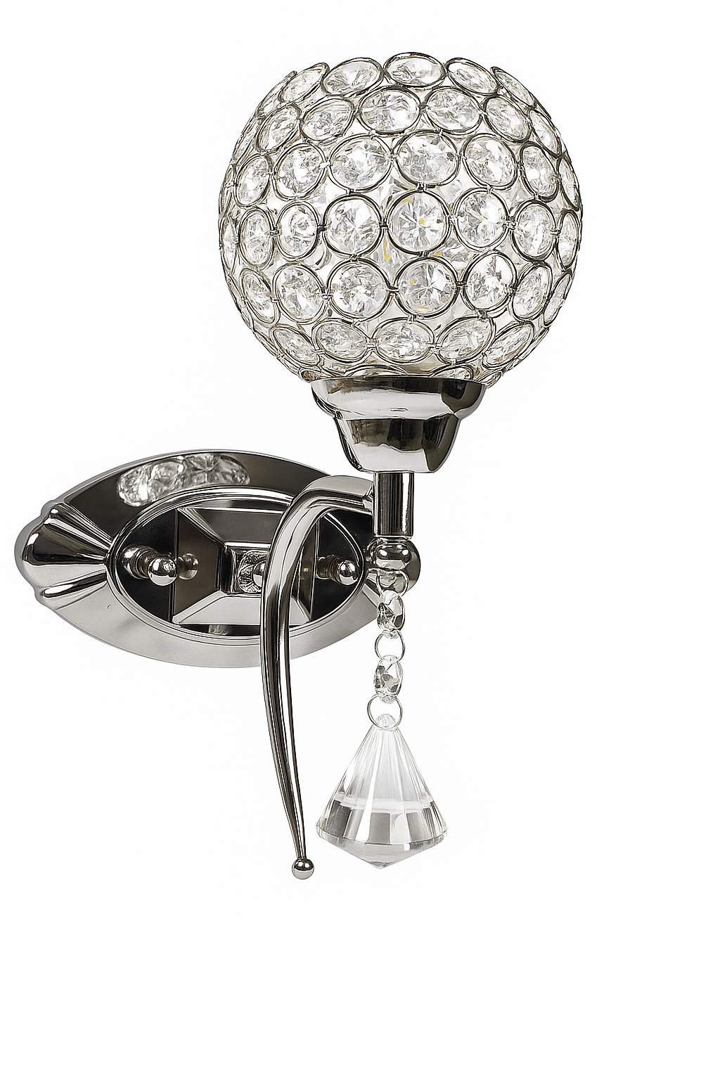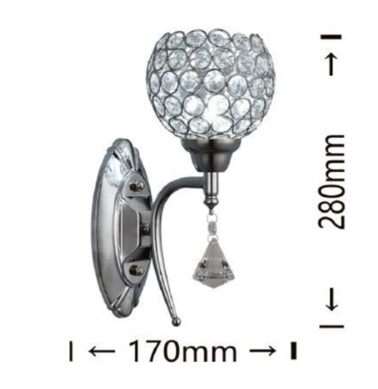 Illumina i tuoi spazi con stile grazie a questa elegante applique da parete disponibile in due finiture raffinate: argento cromato e oro lucido. Il paralume sferico in cristalli acrilici sfaccettati riflette la luce creando suggestivi giochi visivi, mentre il pendente in cristallo trasparente dona un tocco di classe all’ambiente.