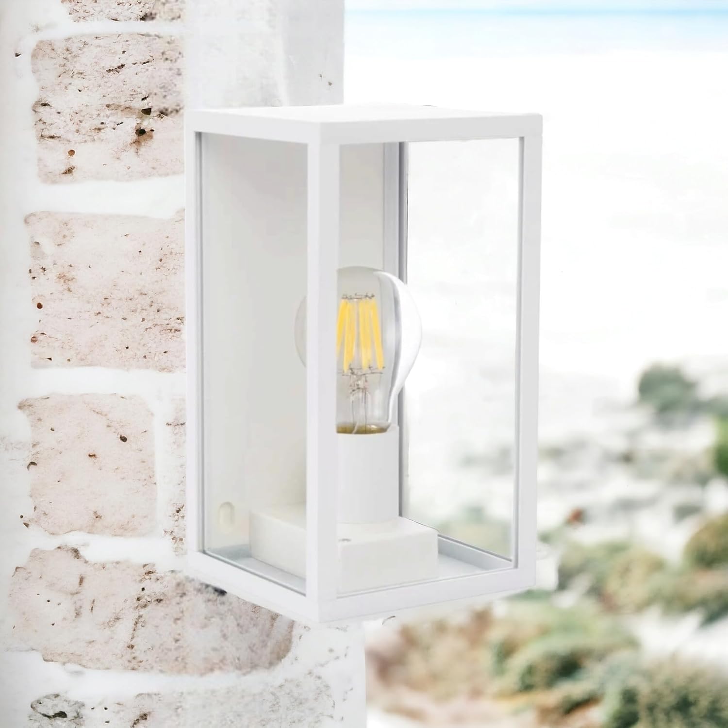 Applique lanterna Bianca da Parete IP44 E27, Lampada Esterna in Alluminio, Illuminazione per Ingresso, Vialetti, Patii
