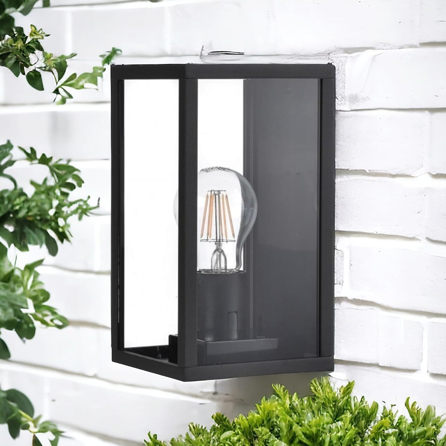 Applique lanterna Nera da Parete IP44 E27, Lampada Esterna in Alluminio, Illuminazione per Ingresso, Vialetti, Patii