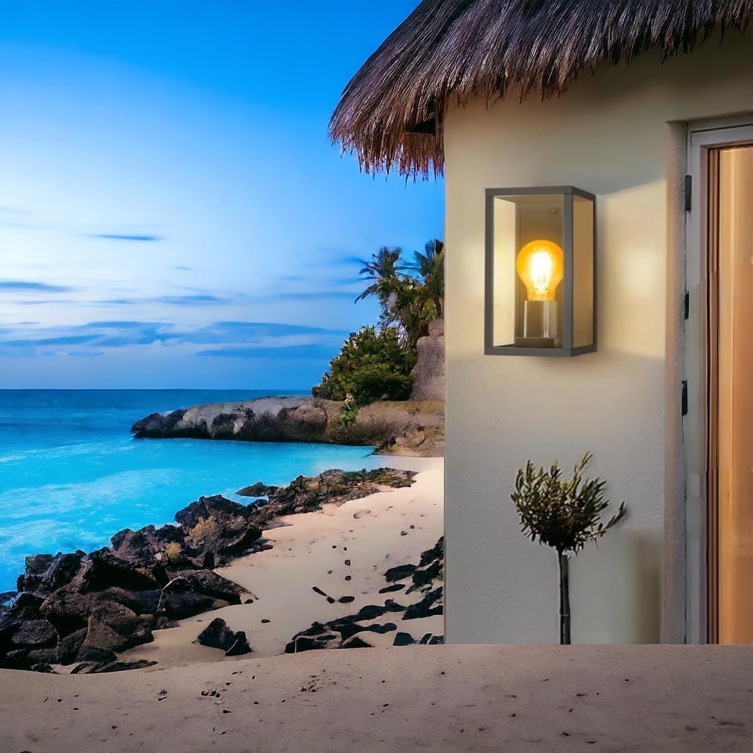 - Stile Rustico Raffinato - Realizzata in metallo verniciato nero e vetro, questa applique offre uno stile minimalista e rustico che si integra perfettamente con qualsiasi facciata esterna.