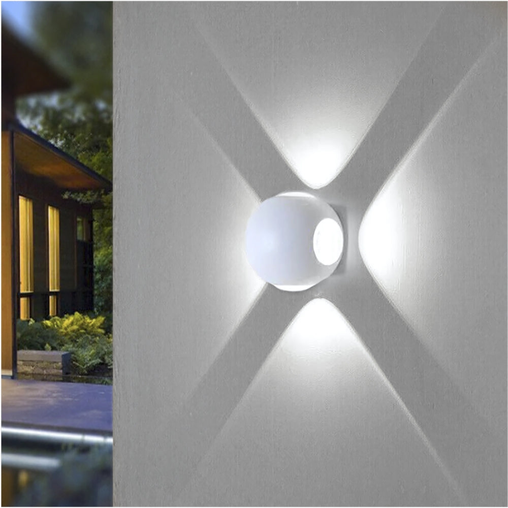 ✔ Design moderno con 4 emissioni di luce – Applique LED da parete con struttura sferica e illuminazione in quattro direzioni che crea un suggestivo effetto a croce sulla parete, ideale per ambienti eleganti e moderni.