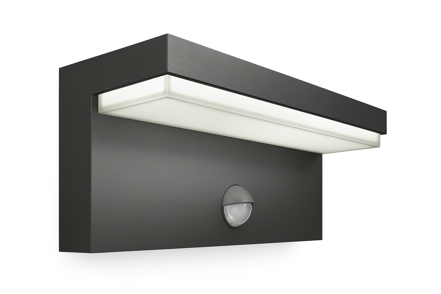 Il sensore di movimento PIR integrato rileva automaticamente la presenza e accende la luce solo quando serve, rendendola ideale per vialetti, ingressi, garage, porticati e giardini.