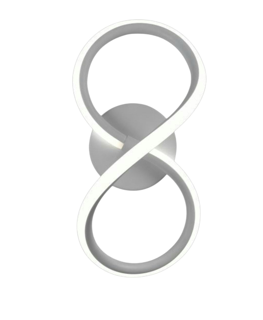 Design moderno a forma di infinito, perfetto per ambienti eleganti e contemporanei; realizzato in alluminio + PVC per durata e stile