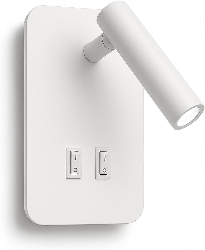 Applique LED da Parete Interno 6W Bianco con Doppio Interruttore e Luce Lettura Orientabile Bianco - Luce Naturale, Fredda, Calda
