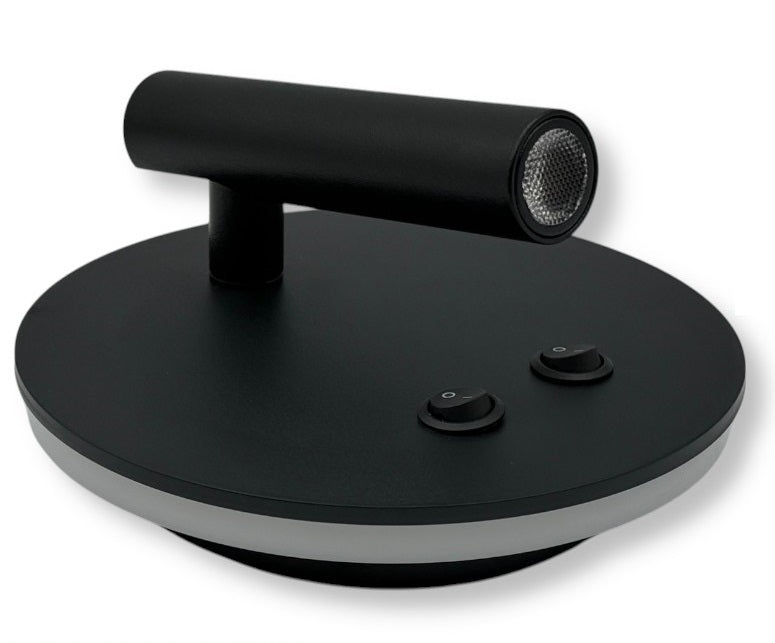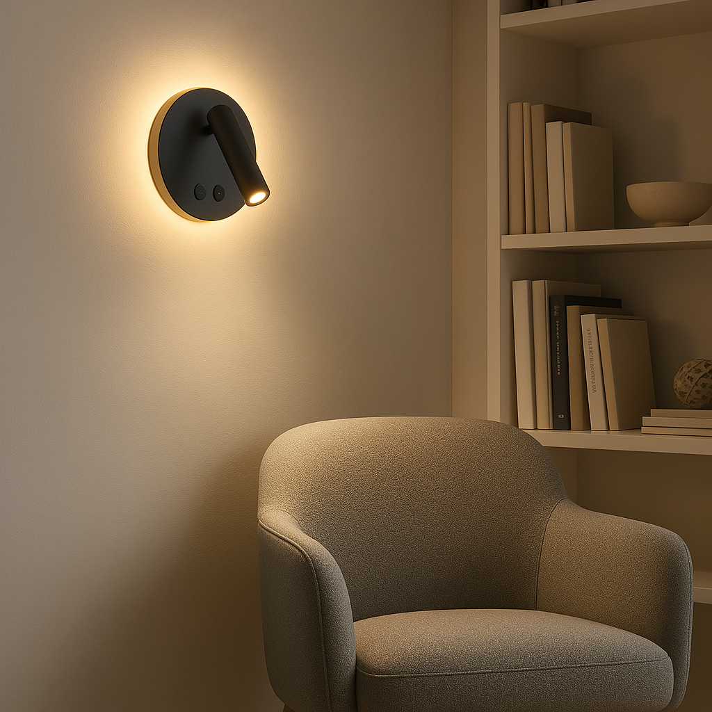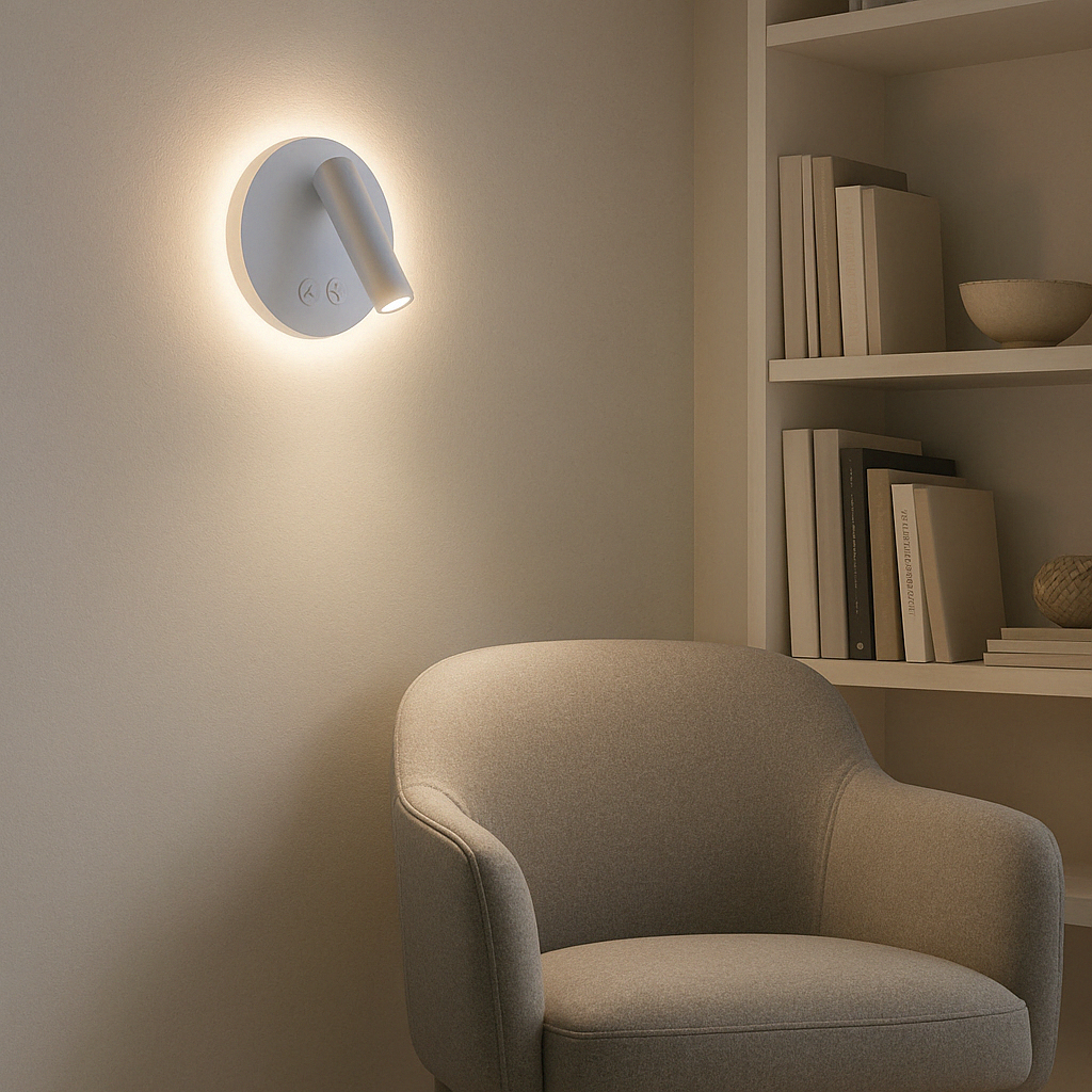 Grazie alla doppia sorgente luminosa, questa lampada offre una luce diretta orientabile tramite faretto cilindrico – perfetta per la lettura – e una luce diffusa posteriore a 180°, ideale per creare atmosfera in camera da letto, soggiorno o studio.