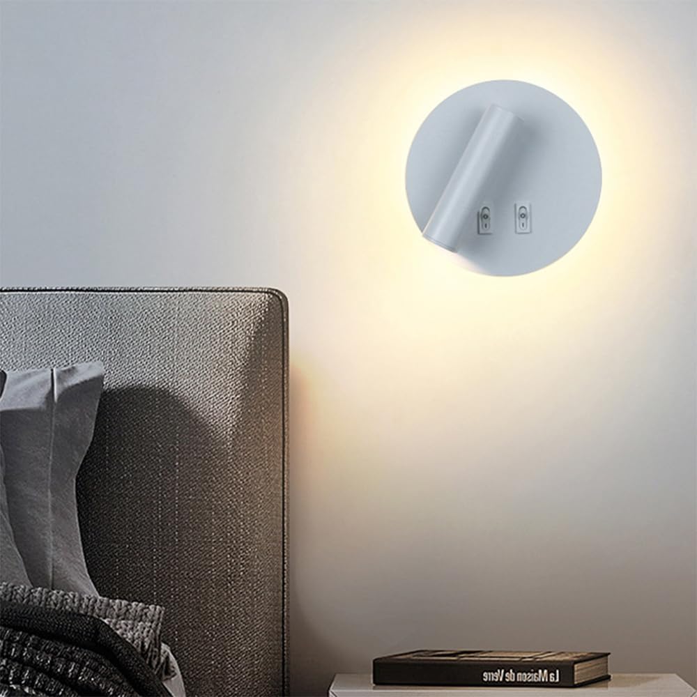 Applique LED da Parete con Doppia Illuminazione – Nero o Bianco, 8W, Faretto Orientabile + Luce Diffusa, Design Moderno