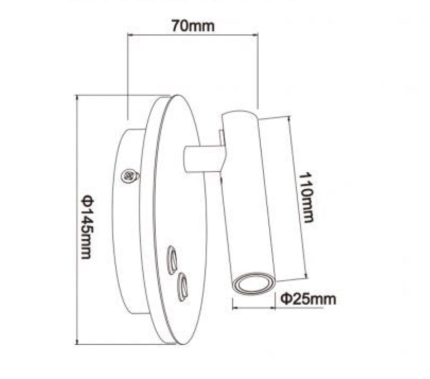 Misure: base Ø145 mm | faretto Ø25 mm x 110 mm