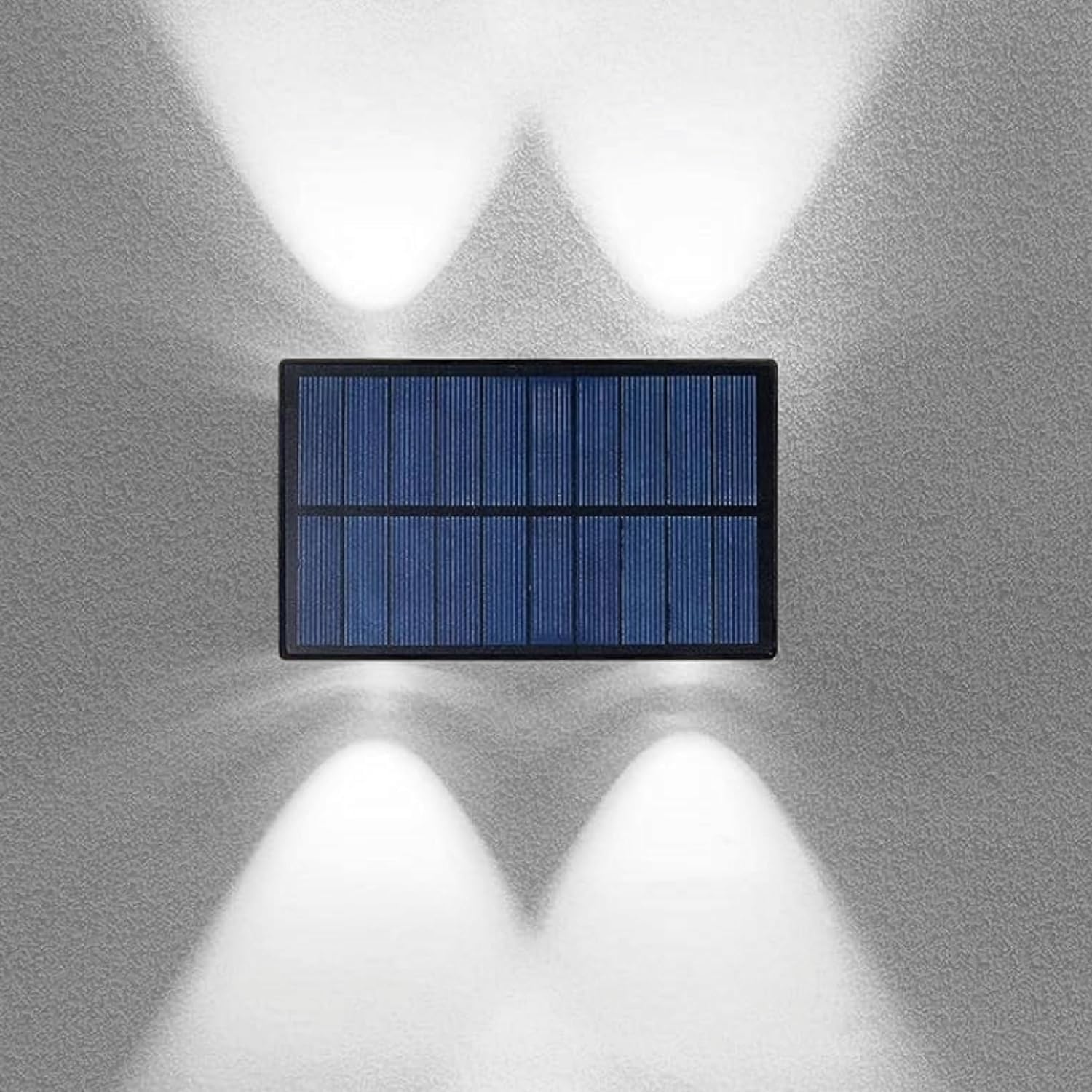 Applique LED Solare da Esterno 4W Biemissione Up&Down IP65 – Lampada da Parete a Luce Fredda 6000K con Pannello Solare Integrato e Sensore Crepuscolare