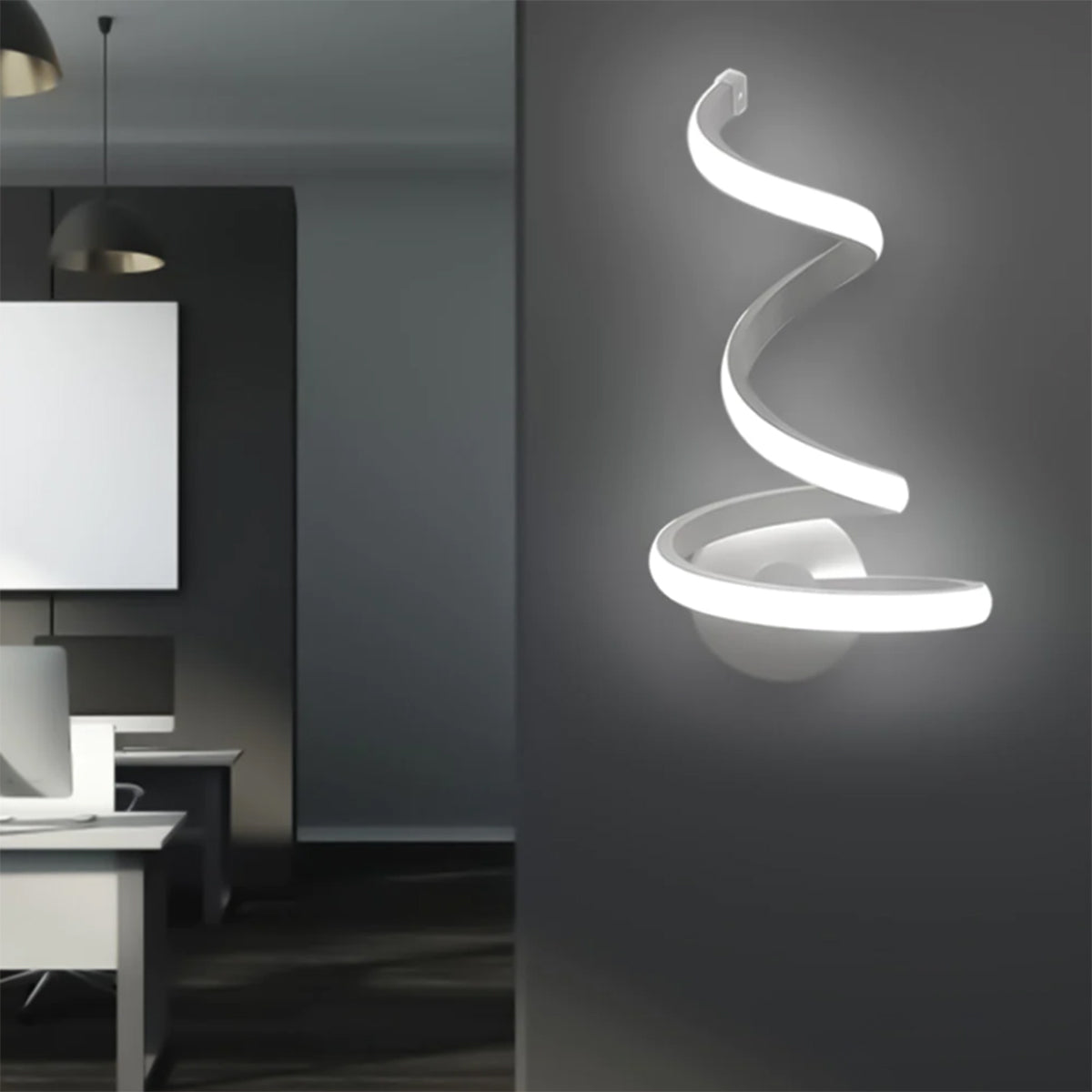 Illumina i tuoi ambienti con stile grazie a questa moderna lampada da parete LED da 12W. Dal design a spirale raffinato e contemporaneo, è ideale per arredare con eleganza camere da letto, soggiorni, ingressi e anche ambienti professionali come uffici, negozi e attività commerciali. Realizzata in alluminio verniciato bianco con diffusore in PVC, garantisce resistenza, durata e facilità di pulizia.