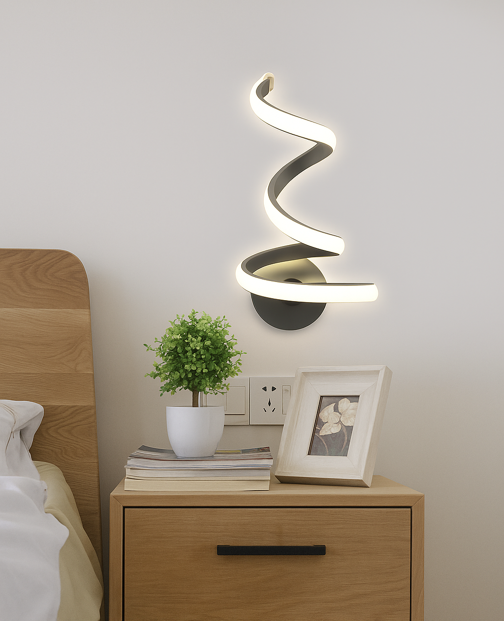 Applique LED da Parete Moderna 12W Bianco a Spirale – Luce Calda Naturale Fredda CCT – 960 Lumen – Design Curvo in Alluminio – Per Interni IP20