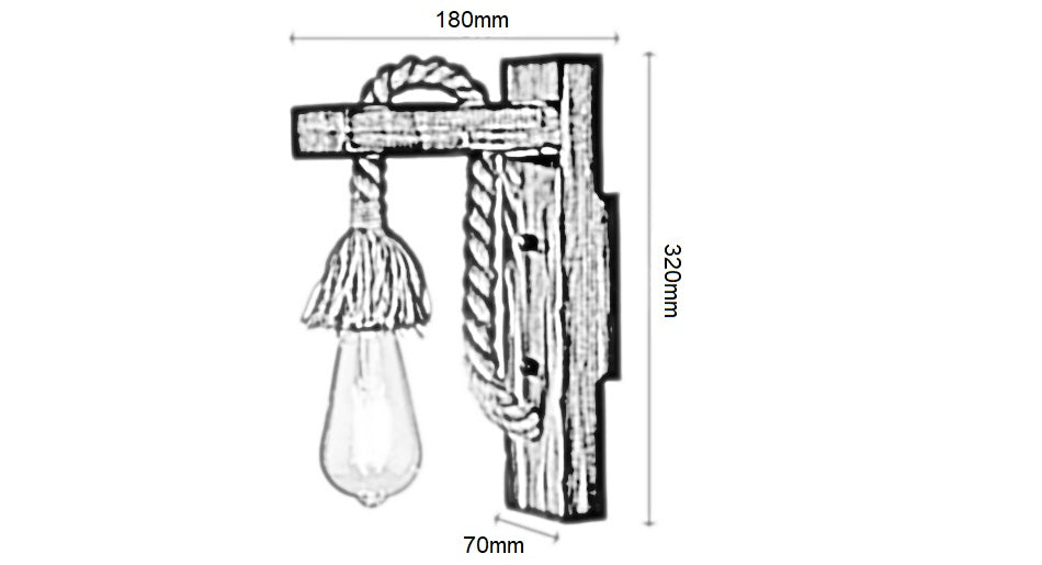 Applique da Parete in Legno e Corda di Canapa E27 – Stile Rustico Vintage Country per Interni – Lampada Decorativa da Muro per Soggiorno, Cucina, Bar e Ristoranti – 180x320 mm