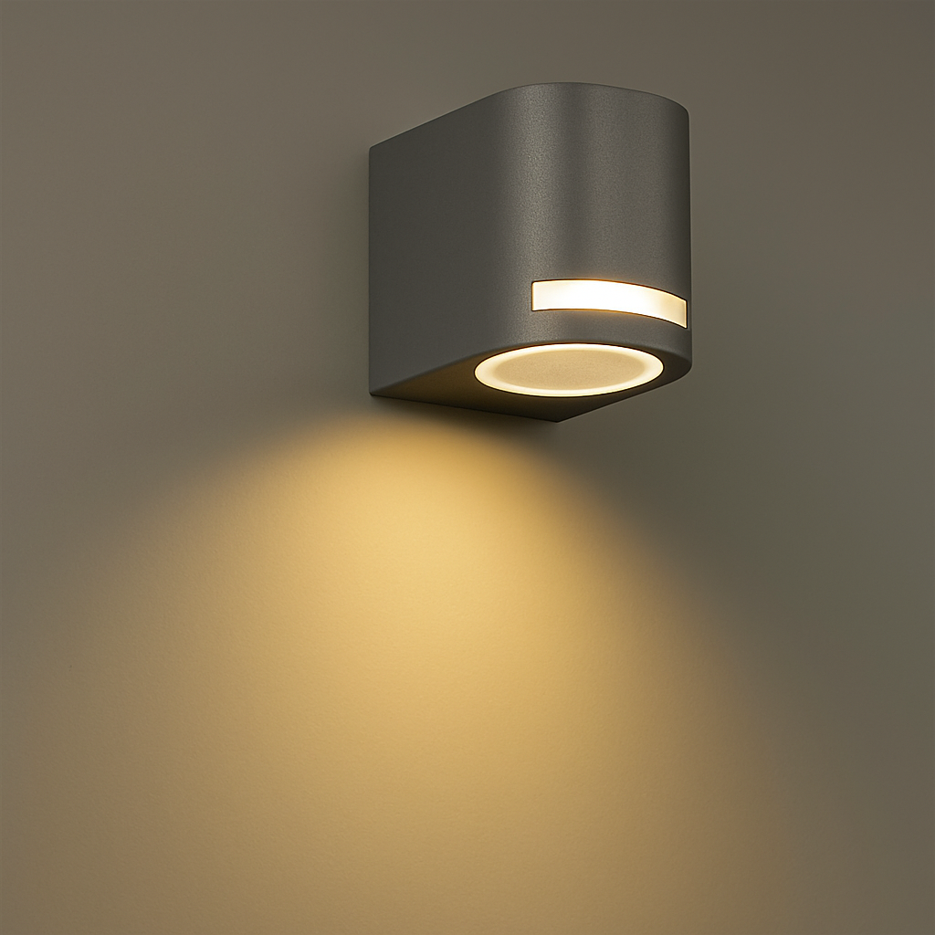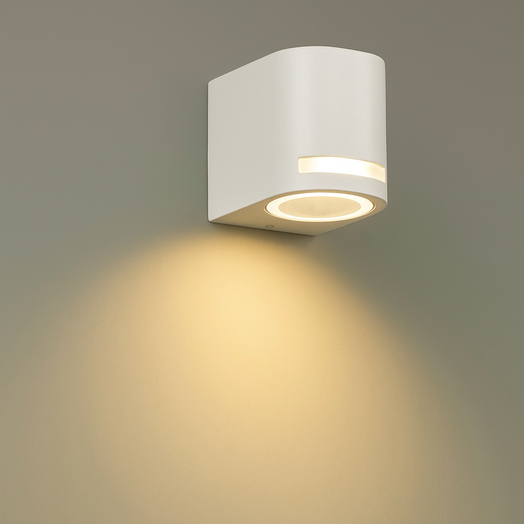 - Illuminazione efficace: Equipaggiato con un portalampada GU10 (faretto non incluso), offre una luce chiara e diretta verso il basso, creando un suggestivo effetto luminoso sulle pareti e migliorando la visibilità e la sicurezza degli spazi esterni.