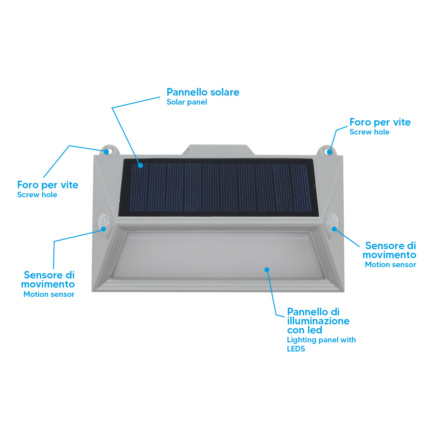 - Modalità: Luce fissa o attivazione automatica tramite movimento
