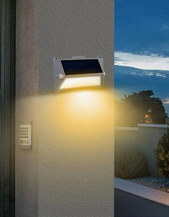 Applique Solare LED da Esterno 3.6W con Sensore di Movimento – Luce Calda o Fredda, IP65, 18 LED, Faretto da Muro