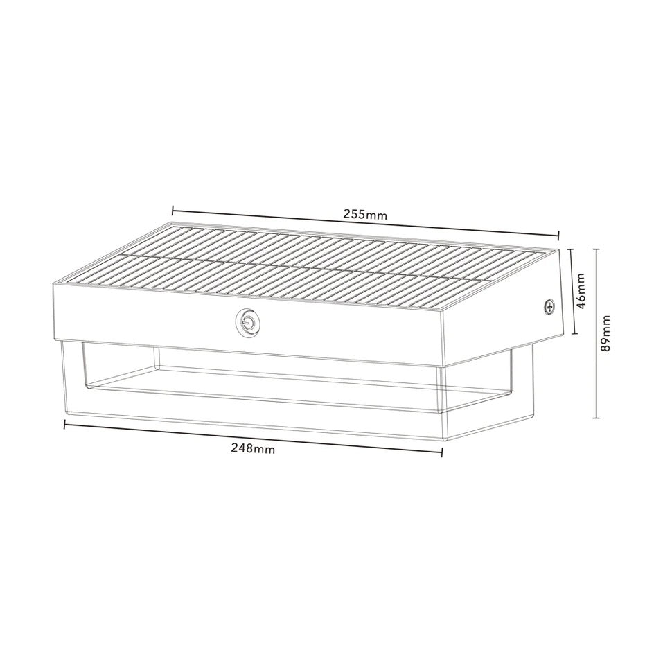 Design moderno e resistente IP54; dimensioni compatte (25,5x90x11 mm), struttura robusta per uso esterno in ambienti come pareti, ingressi, balconi o cortili