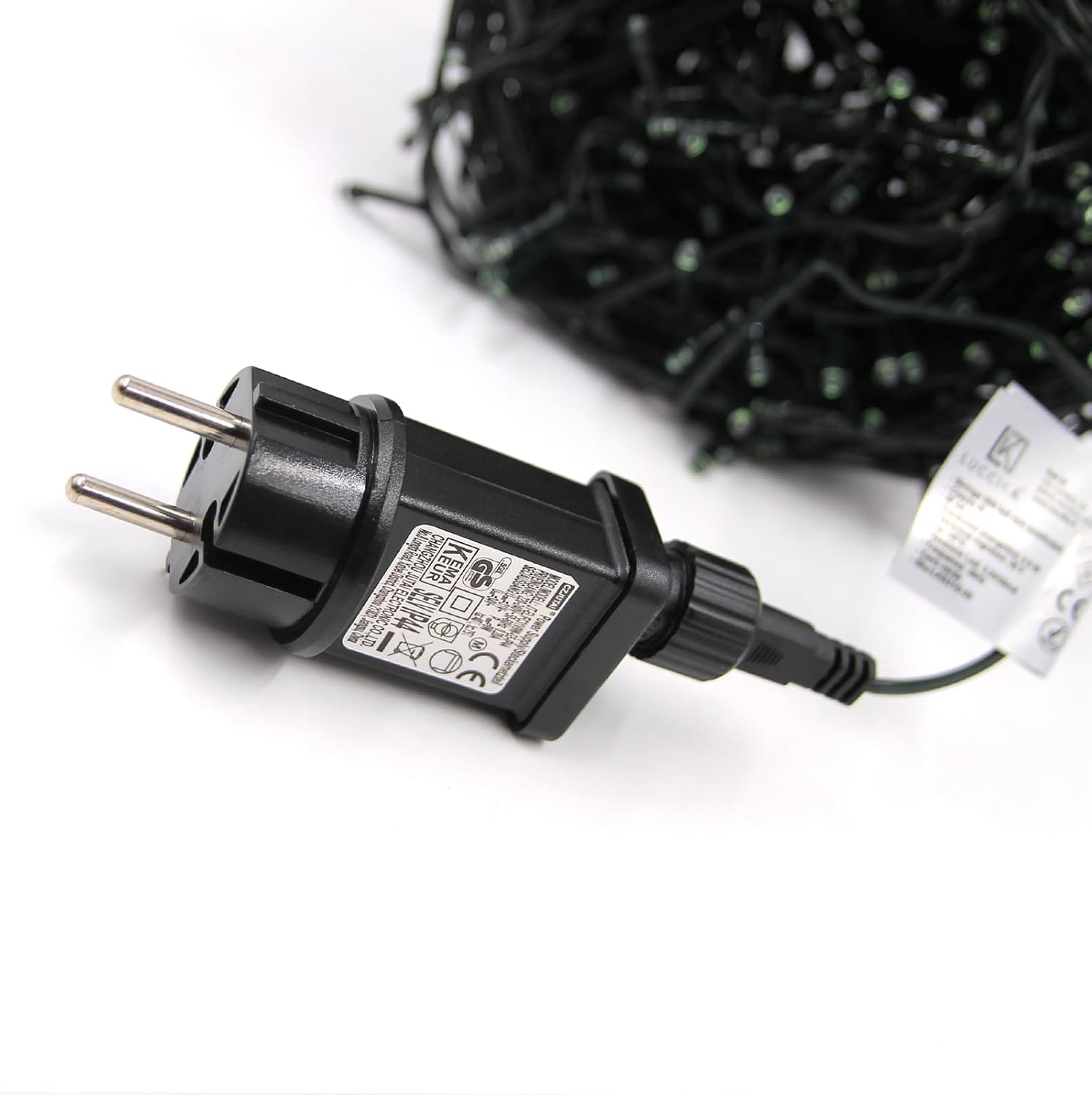 Catena Luminosa Luci per Albero di Natale da Interno ed Esterno, Ip44, 300 LED, Cavo verde, 15 metri, Luce Calda, Fredda, Multicolor, Rossa, Verde Blu