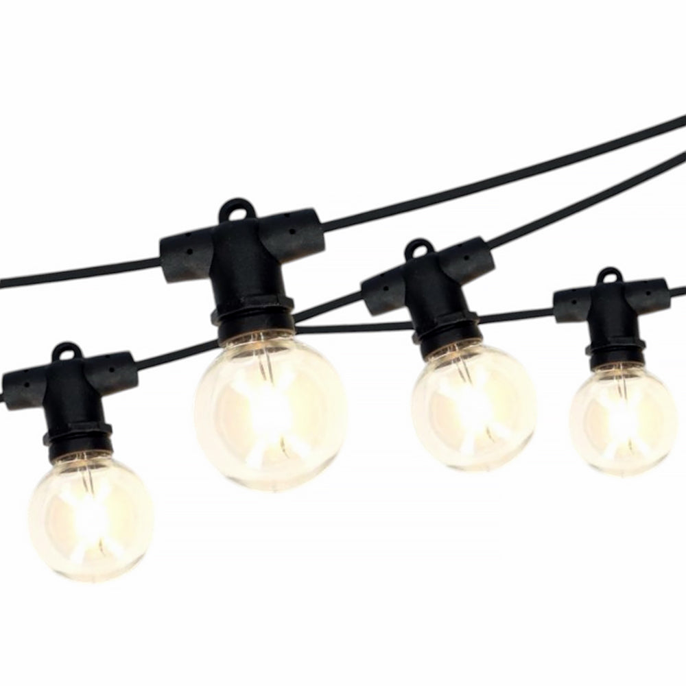 Questa catenaria di luci da esterno è perfetta per creare un'atmosfera accogliente e luminosa nei tuoi spazi all'aperto. Con una lunghezza totale di 10 metri e un cavo aggiuntivo di 1,30 metri con spina, puoi facilmente posizionarla dove preferisci. Il design resistente IP65 e l'attacco E12 per lampadine la rendono ideale per ogni tipo di ambiente, anche in caso di intemperie. Ogni confezione include 10 portalampade e 11 lampadine (una di ricambio), offrendo praticità e durata. Inoltre, è possibile prolungarla fino a 3 pezzi per adattarsi a ogni esigenza. Perfetta per giardini, terrazzi, eventi all'aperto, matrimoni e feste.