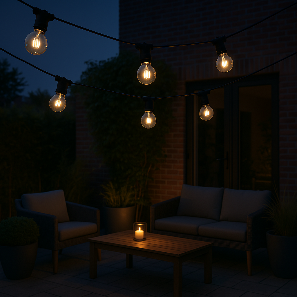 Catenaria di Luci da Esterno 10m, IP65, Luce calda, Attacco E12, 10 Portalampade con lampadine Prolungabile