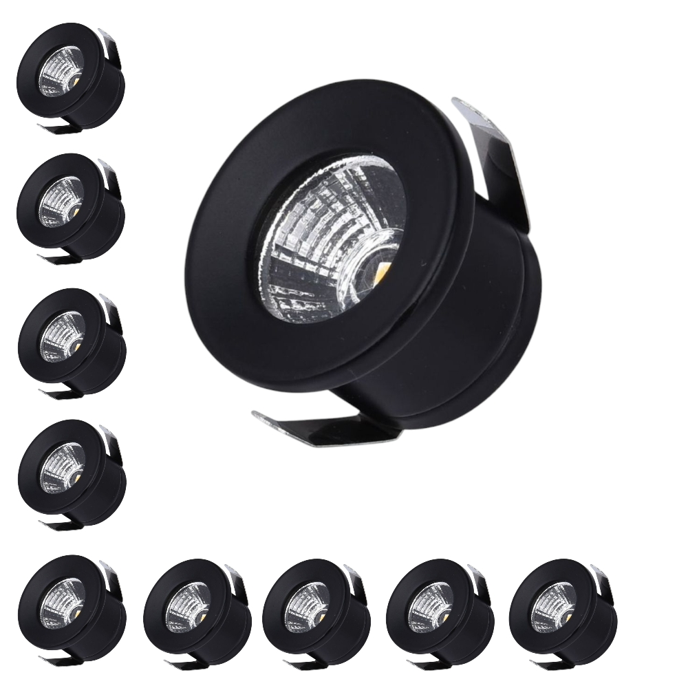 Set 10 Faretto a led cob da incasso in alluminio nero punto luce 1w 220v per controsoffittature scale cielo stellato - Luce Naturale, Fredda, Calda