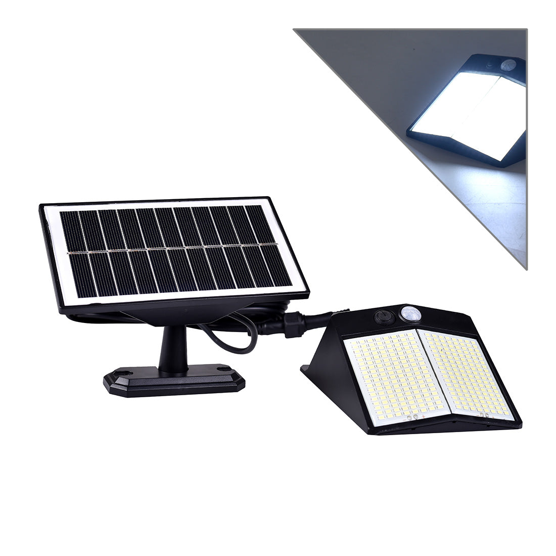 Faretto LED Solare da Esterno con Sensore di Movimento, 288 LED, Luce Fredda 6500K, IP65 Impermeabile, con Pannello Solare Separato e Cavo da 5m, Ricarica Solare Automatica
