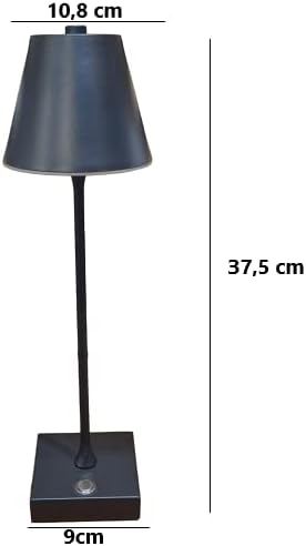 - Senza Fili e Portatile: Lampada da tavolo ricaricabile, potenza 1 Watt, flusso luminoso 100 lumen. Batteria da 2000 mA, cavo USB incluso. Ampio fascio luminoso a 120°. Perfetta per comodini e scrivanie. Dimensioni: altezza 37,5cm , base 9cm, diametro paralume 10,8 cm