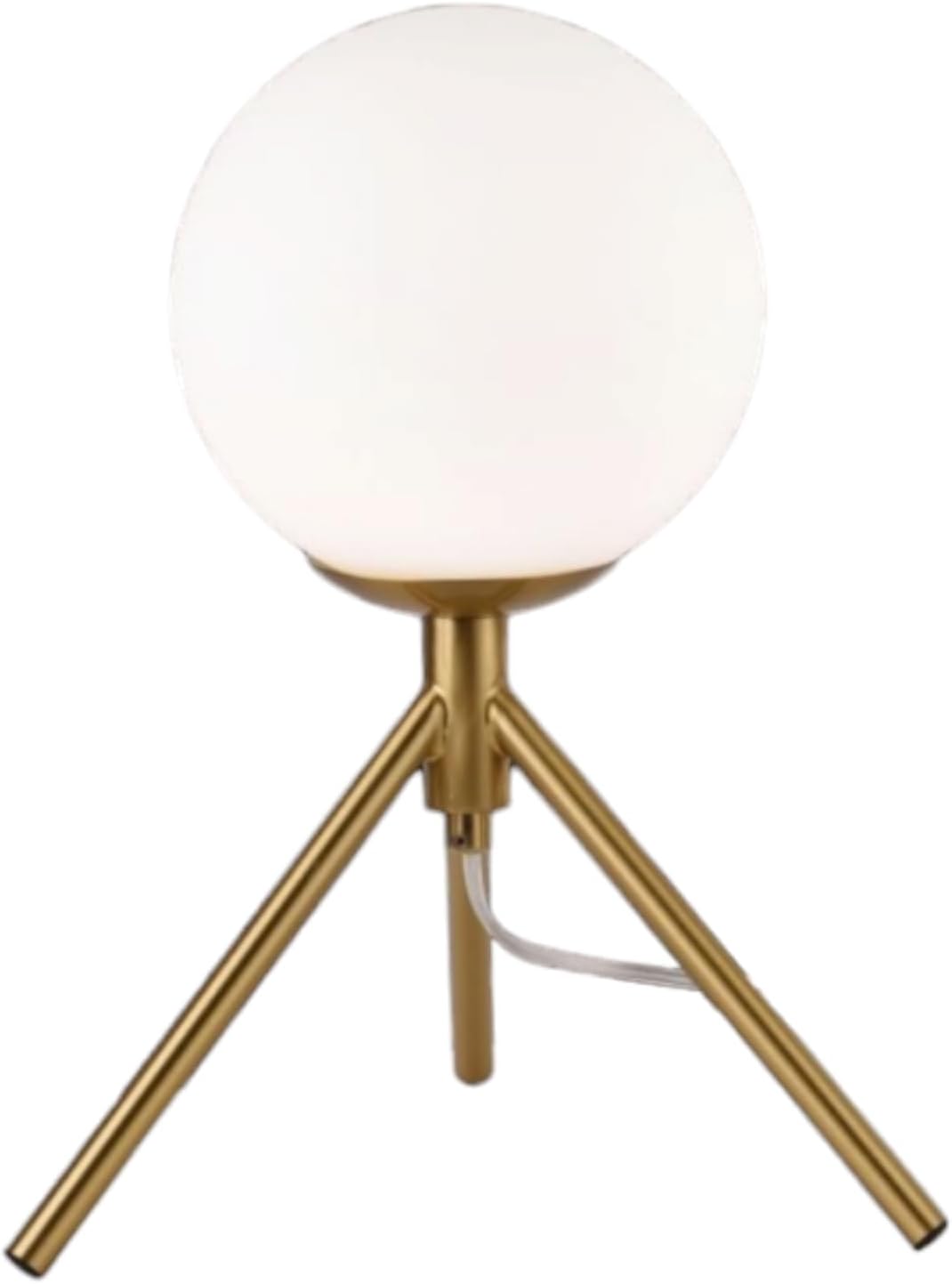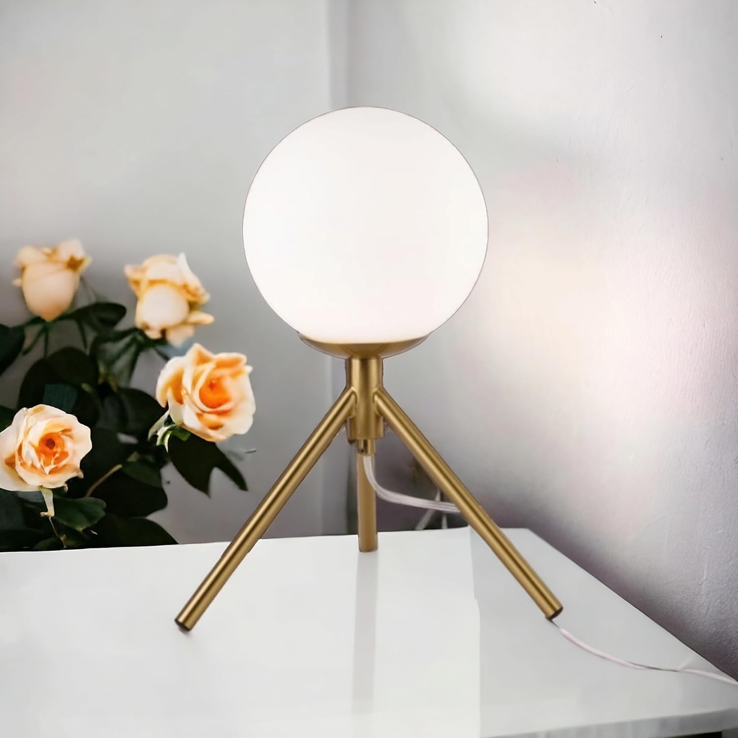 Lampada da Tavolo Minimalista Dorata con sfera in Vetro Bianco Design Elegante per Illuminare e Decorare Spazi Interni Adatta a Comodini Scrivanie e Tavolini Altezza 30 cm 1 sfera con treppiede