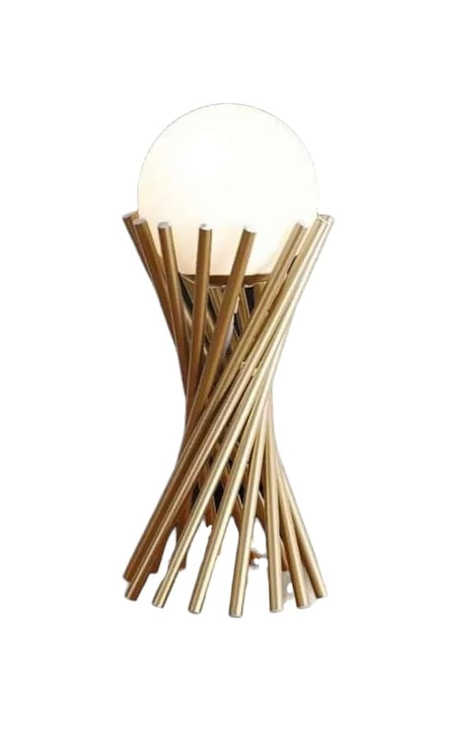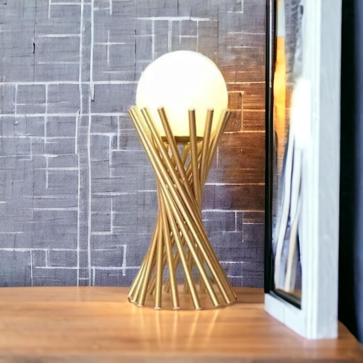 Lampada da Tavolo Minimalista dorata con Sfera in Vetro Bianco Design Elegante per Illuminare e Decorare Spazi Interni Adatta a Comodini Scrivanie e Tavolini Altezza 36 cm