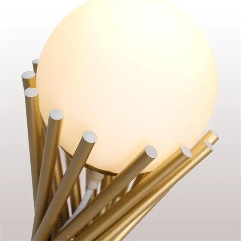 - Materiali Premium - Realizzata con tubolari color dorato e paralume sferico in vetro di alta qualità, garantendo un design contemporaneo e resistenza nel tempo.