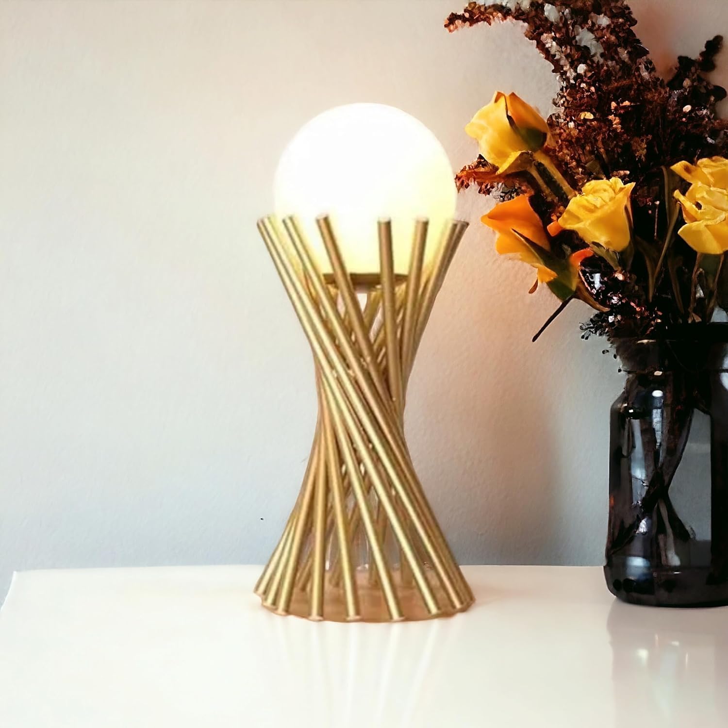 Illumina con stile e eleganza i tuoi spazi grazie alla nostra lampada da tavolo moderna dal design minimalista e all'avanguardia. Realizzata con tubolari color oro e un paralume sferico in vetro bianco opalino, questa lampada aggiunge un tocco di originalità ad ogni ambiente. Perfetta per arredare e illuminare con stile scrivanie, comodini, comò e altri mobili bassi. Il suo design unico si integra perfettamente negli ambienti moderni, offrendo un'illuminazione ambientale confortevole e rilassante. Realizzata con materiali di alta qualità come il metallo e il vetro, la nostra lampada da tavolo è sinonimo di durata e affidabilità nel tempo. Dotata di attacco per lampadina G9 (lampadina non inclusa) e un cavo di alimentazione di 90 cm con interruttore, offre una facile installazione e un comodo utilizzo quotidiano.