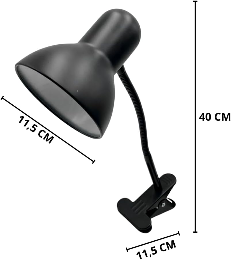 Lampada da Tavolo in Metallo con Braccio flessibile Testa Girevole e pinza Attacco E27 Ideale per Scrivania lettura studio