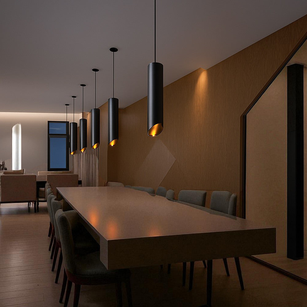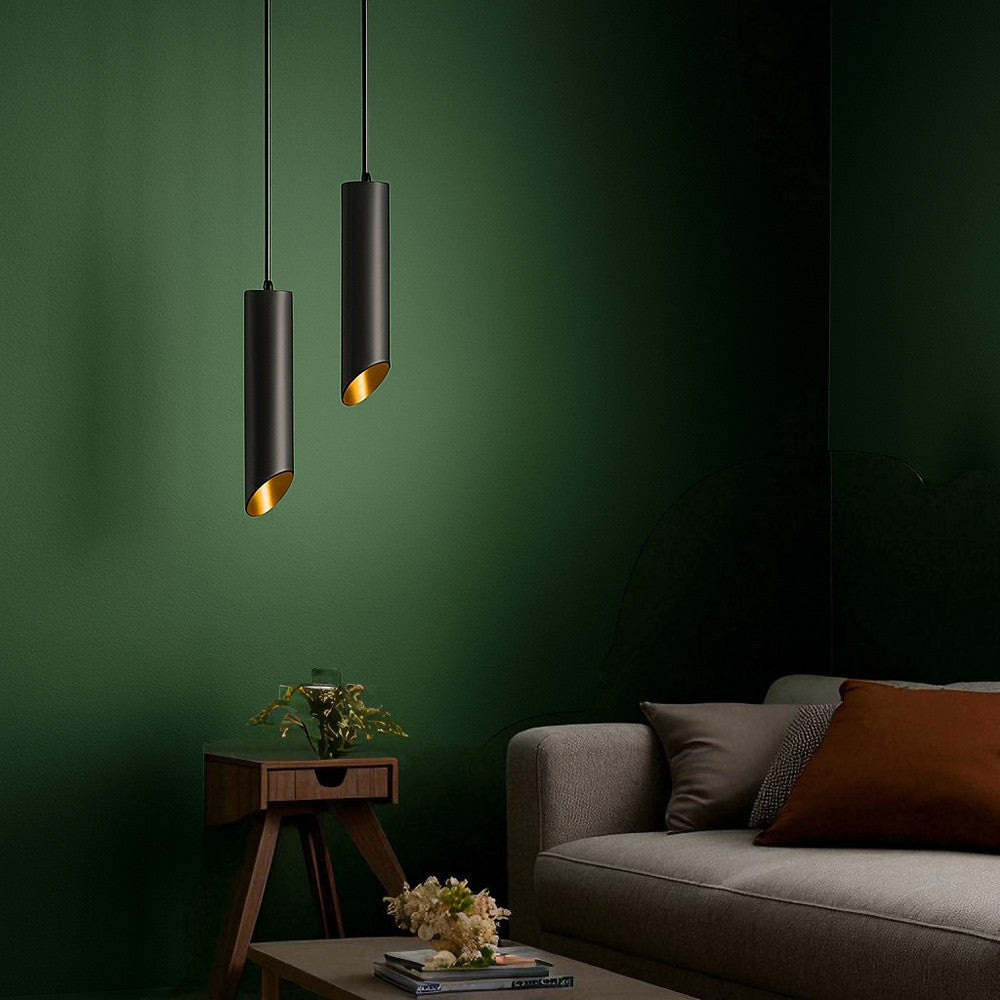 Lampadario a sospensione cilindrico in alluminio nero con interno oro, attacco GU10, cavo regolabile fino a 200 cm, Ø 5,5 cm, altezza corpo 30 cm – Design moderno minimalista