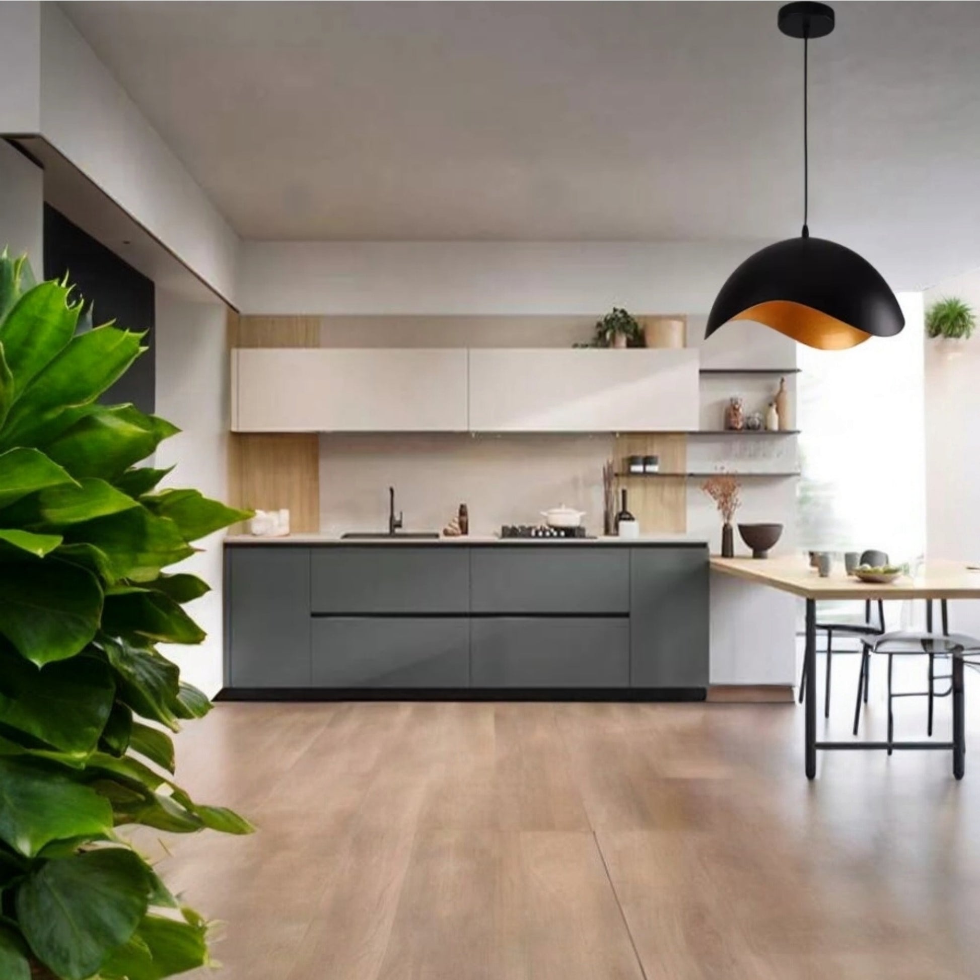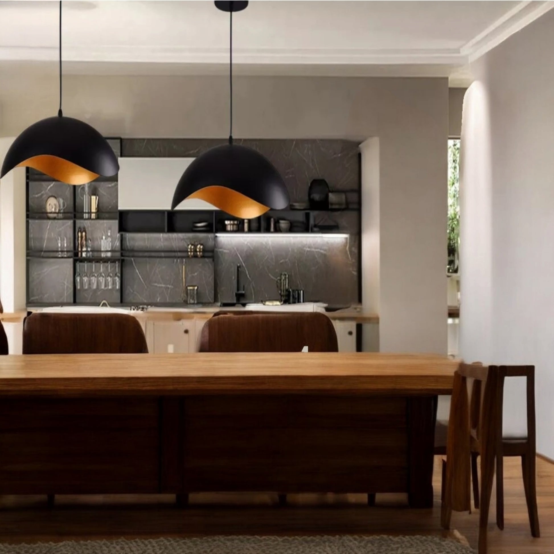 Il lampadario sospeso E27 moderno a forma di conchiglia è una soluzione di illuminazione versatile e stilosa, ideale per ambienti come cucine, soggiorni e camere da letto. Il design minimalista con finitura nera e interno dorato o bianca crea un effetto luminoso caldo e avvolgente conferendo un aspetto elegante e contemporaneo. Caratteristiche principali: Design elegante e versatile: La forma a conchiglia aggiunge un tocco di stile moderno a qualsiasi ambiente. Illuminazione diffusa e accogliente: La curvatura interna riflette la luce in modo uniforme, creando un'atmosfera calda e invitante in cucina, soggiorno o camera da letto. Lunghezza regolabile: Il cavo regolabile consente di adattare l'altezza del lampadario alle esigenze specifiche del tuo spazio, offrendo flessibilità nell'installazione. Compatibilità con lampadine E27: Supporta lampadine E27, permettendo di scegliere tra diverse opzioni di illuminazione, come LED a risparmio energetico o lampadine a filamento per un effetto vintage. Facile manutenzione: Il design semplice facilita la pulizia e la manutenzione, garantendo una lunga durata e prestazioni ottimali nel tempo.