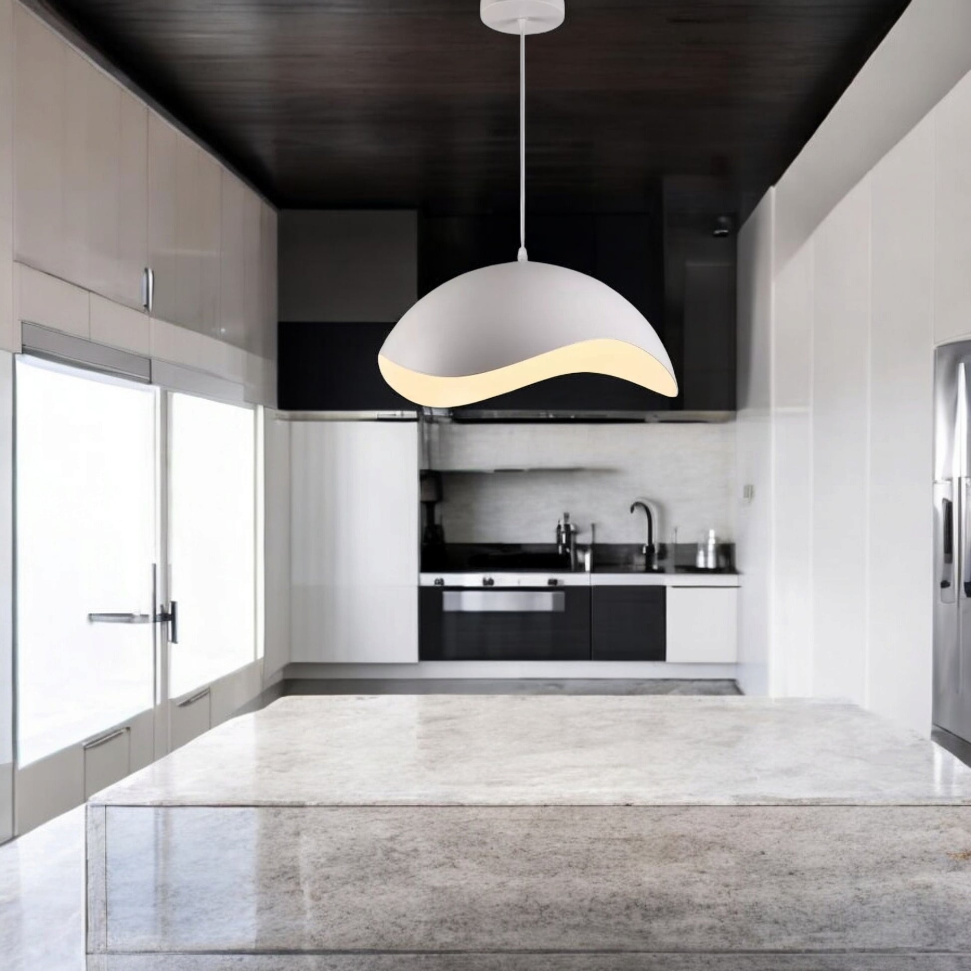 Lampadario Sospeso E27 Moderno a Forma di Conchiglia, Regolabile, Design Minimalista per Cucina, Soggiorno e Camera da Letto, Bianco, Nero