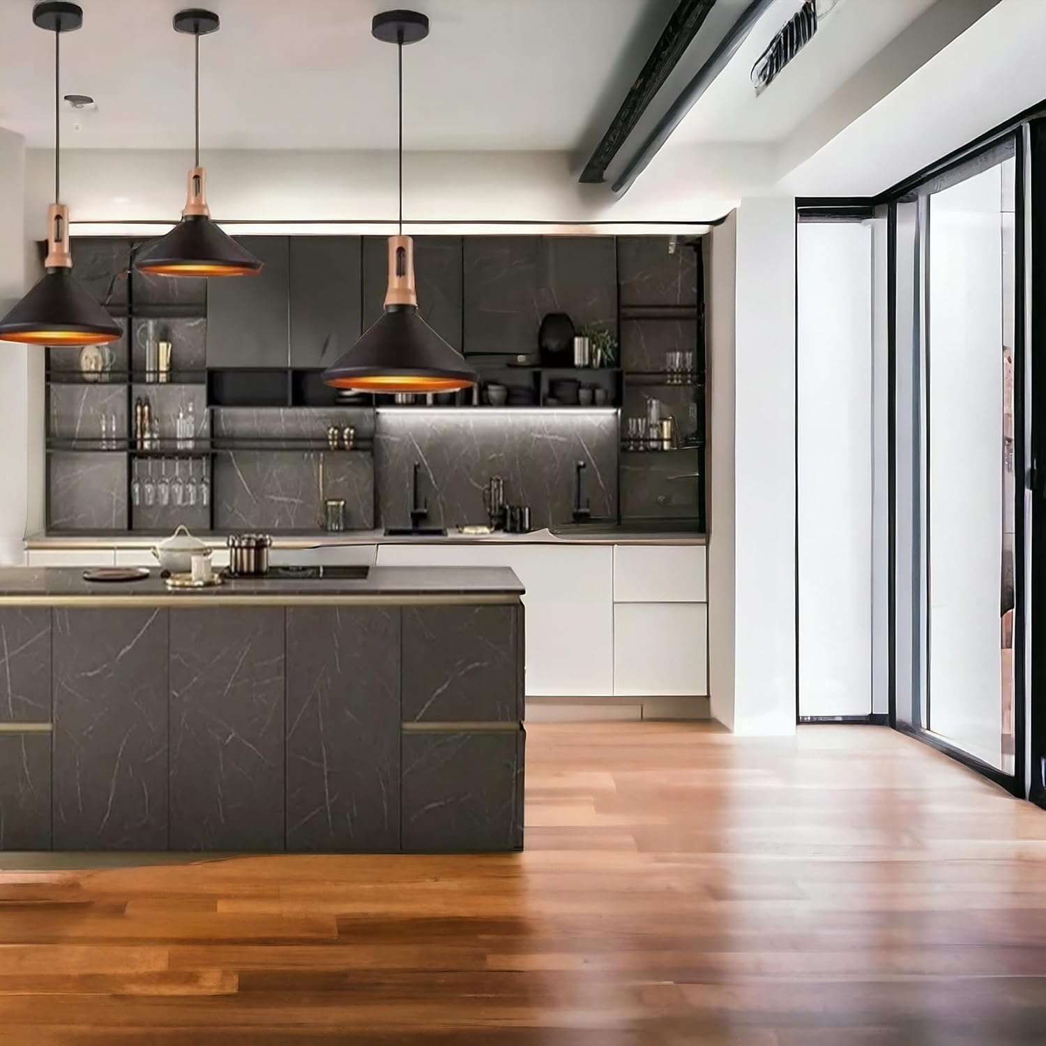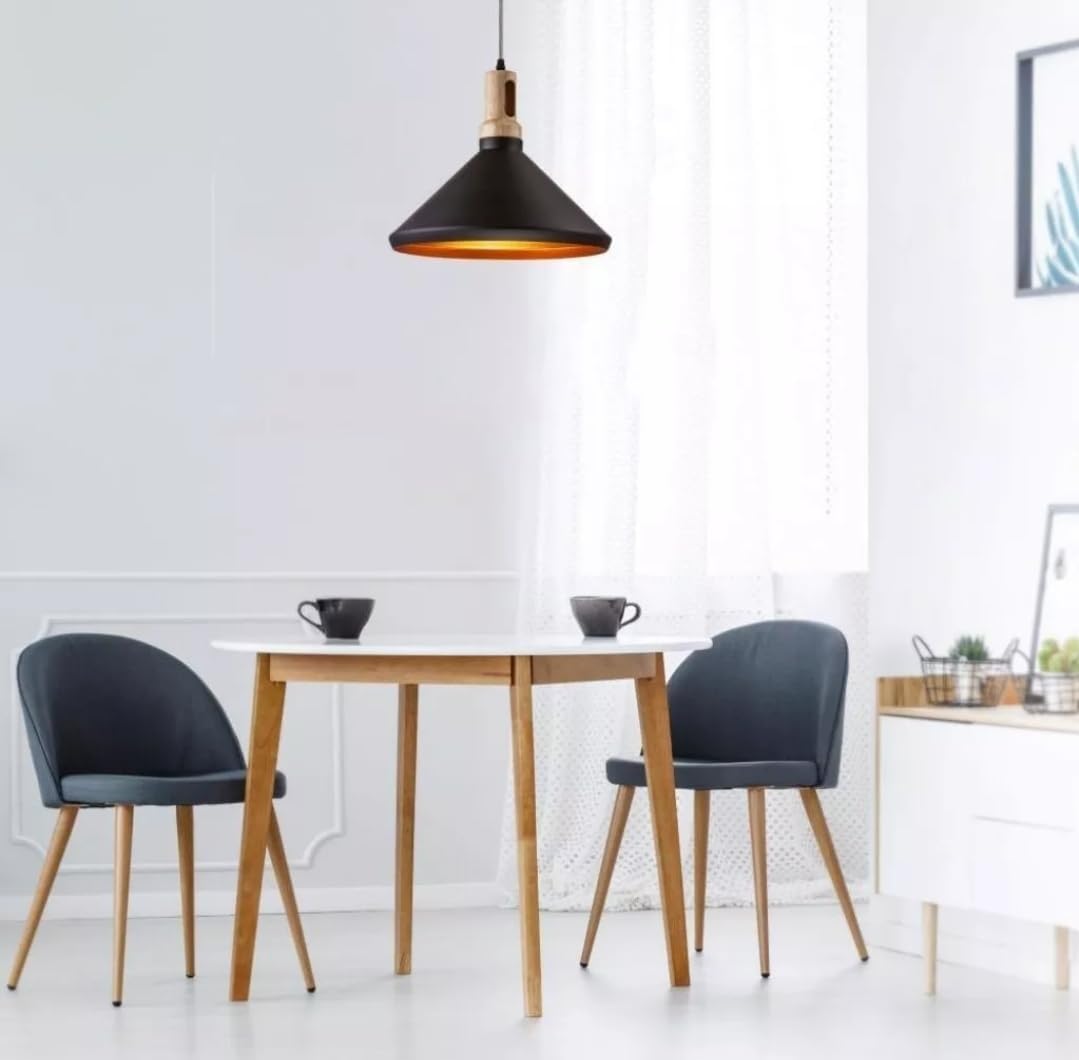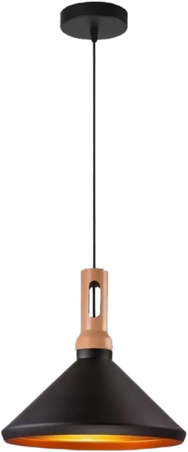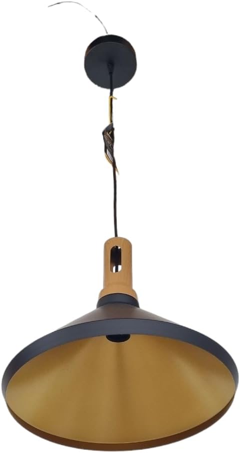 Porta luce e stile nei tuoi ambienti con questo lampadario a sospensione dal design essenziale e moderno. Realizzato interamente in metallo verniciato nero e oro, si integra perfettamente in cucine, soggiorni, camere da letto o uffici. Il paralume conico da 35 cm garantisce una diffusione uniforme della luce, mentre l’attacco E27 permette l’utilizzo di lampadine fino a 60W (non incluse). Con un’altezza totale di 130 cm, è ideale anche per soffitti alti o installazioni sopra tavoli e piani di lavoro. Grado di protezione IP20, adatto all’uso esclusivamente interno.