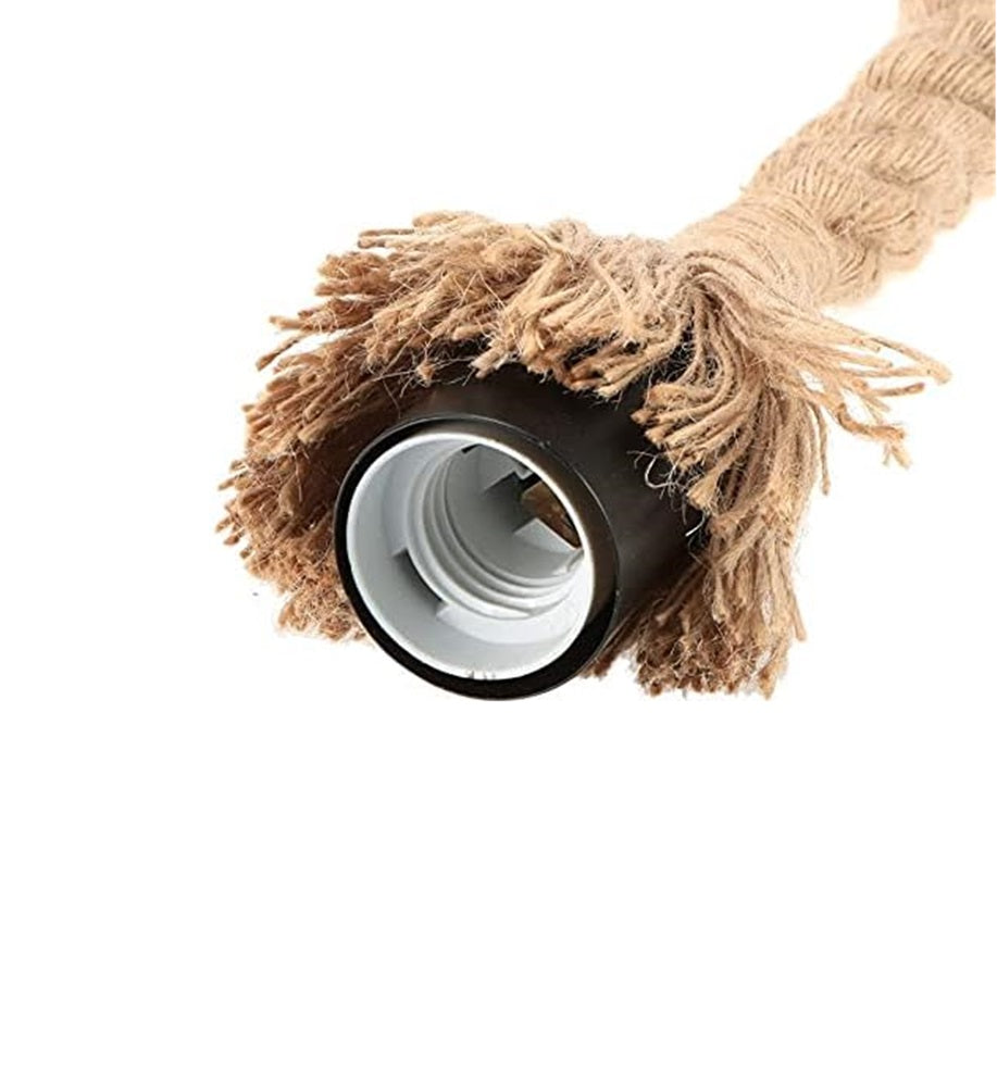 Lampadario a Sospensione Vintage con Corda di Canapa 150cm, Attacco E27, Rosone in Metallo Nero, per Cucina, Soggiorno, Taverna, Stile Industriale e Rustico, 220–240V