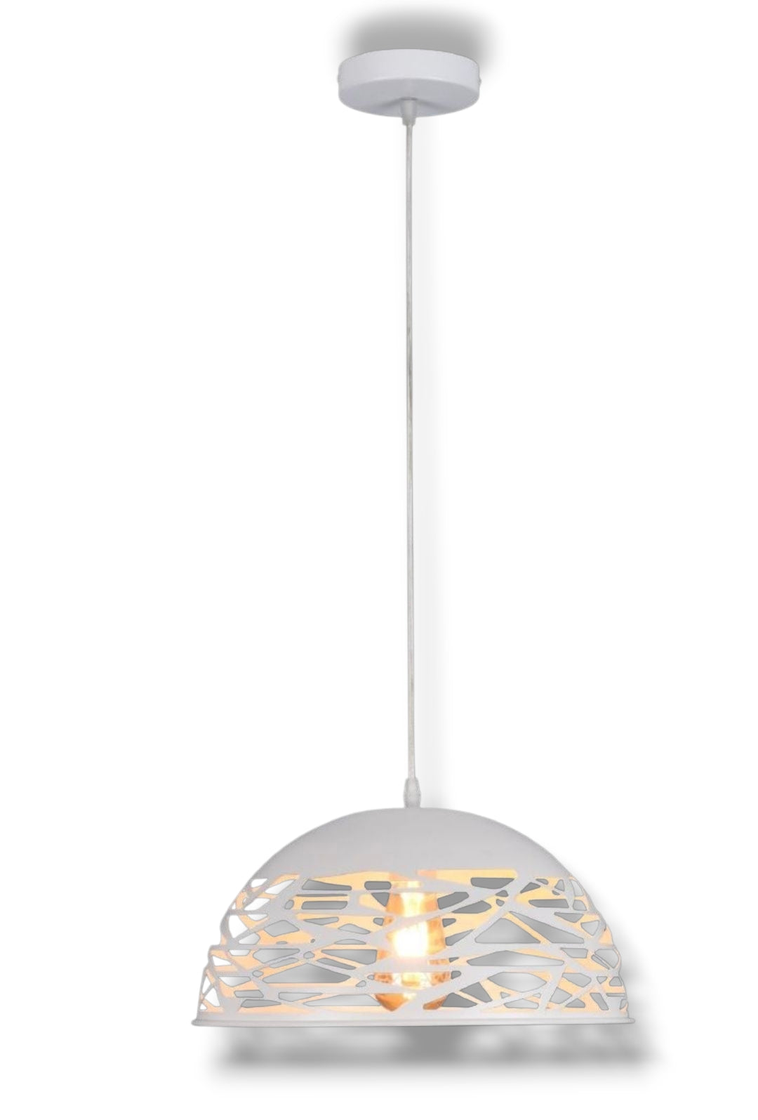 Lampadario a sospensione E27 in metallo bianco, paralume traforato Ø36 cm, design moderno, IP20 – Altezza regolabile fino a 137 cm