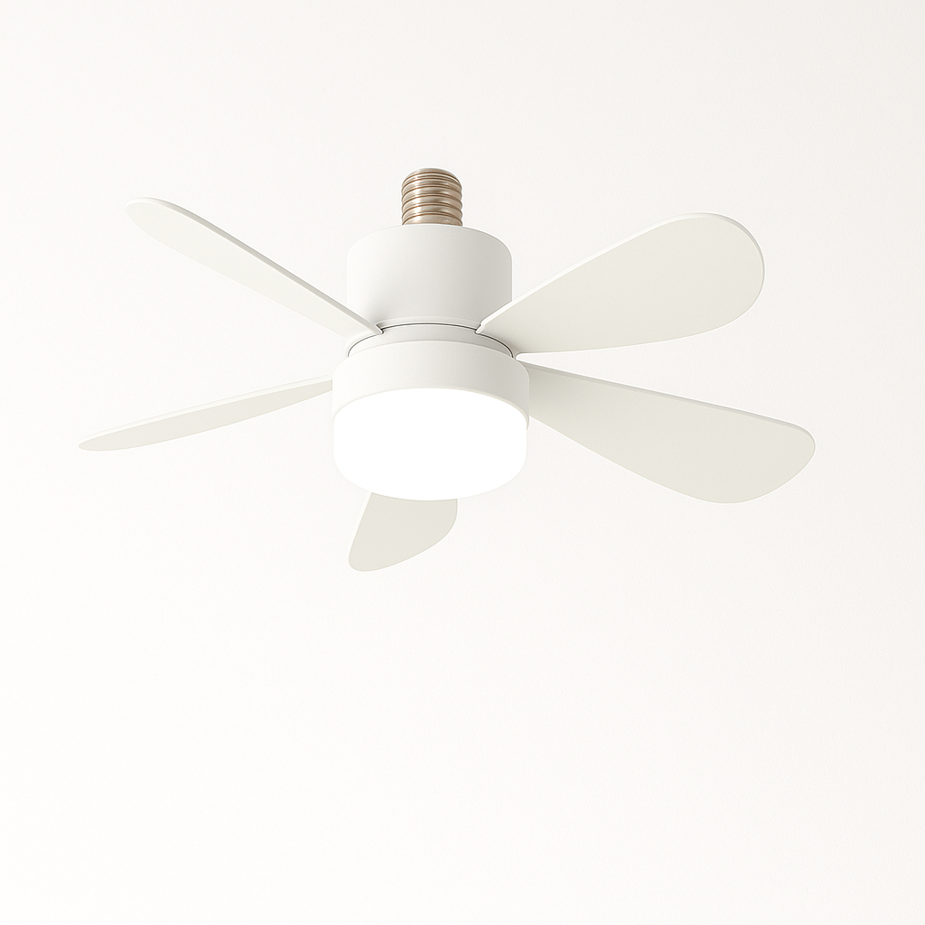 Design compatto con attacco E27; installazione facile su qualsiasi portalampada standard, ideale anche per piccoli spazi dove non è possibile installare un ventilatore a soffitto