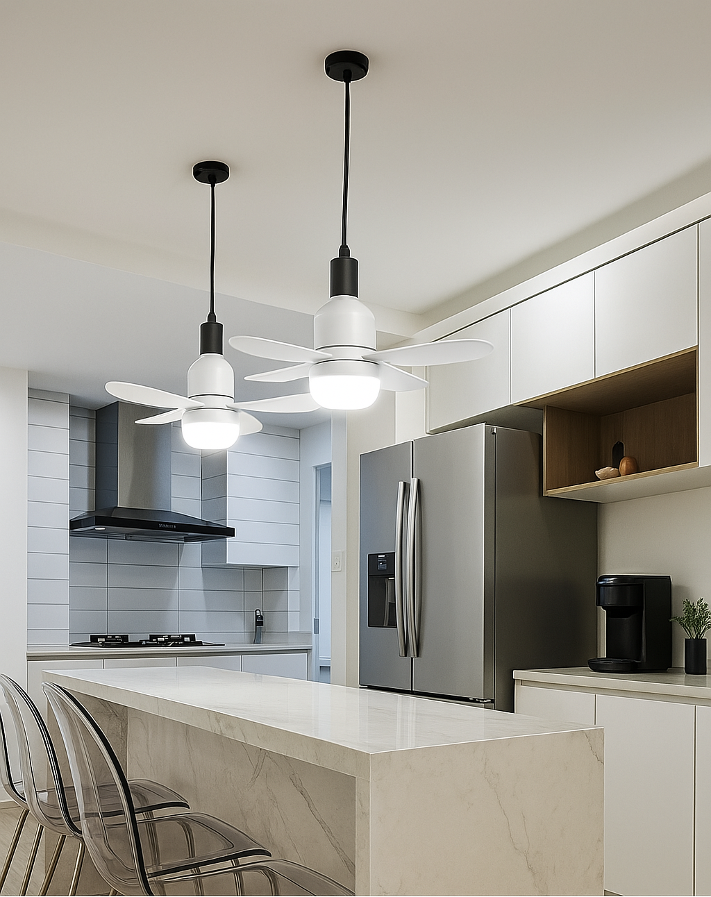 Luce e ventilazione in un solo dispositivo; combina una lampadina LED da 19W con un ventilatore da 9W per illuminare e rinfrescare ogni ambiente in modo efficiente e funzionale