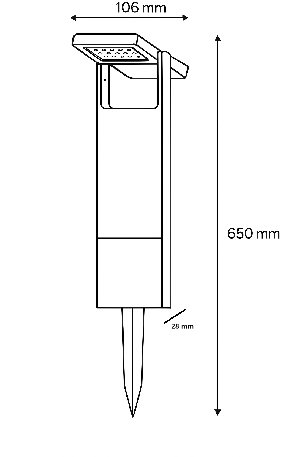 L'installazione è semplice grazie al pratico picchetto che permette il fissaggio diretto al terreno, senza necessità di cavi o collegamenti elettrici.