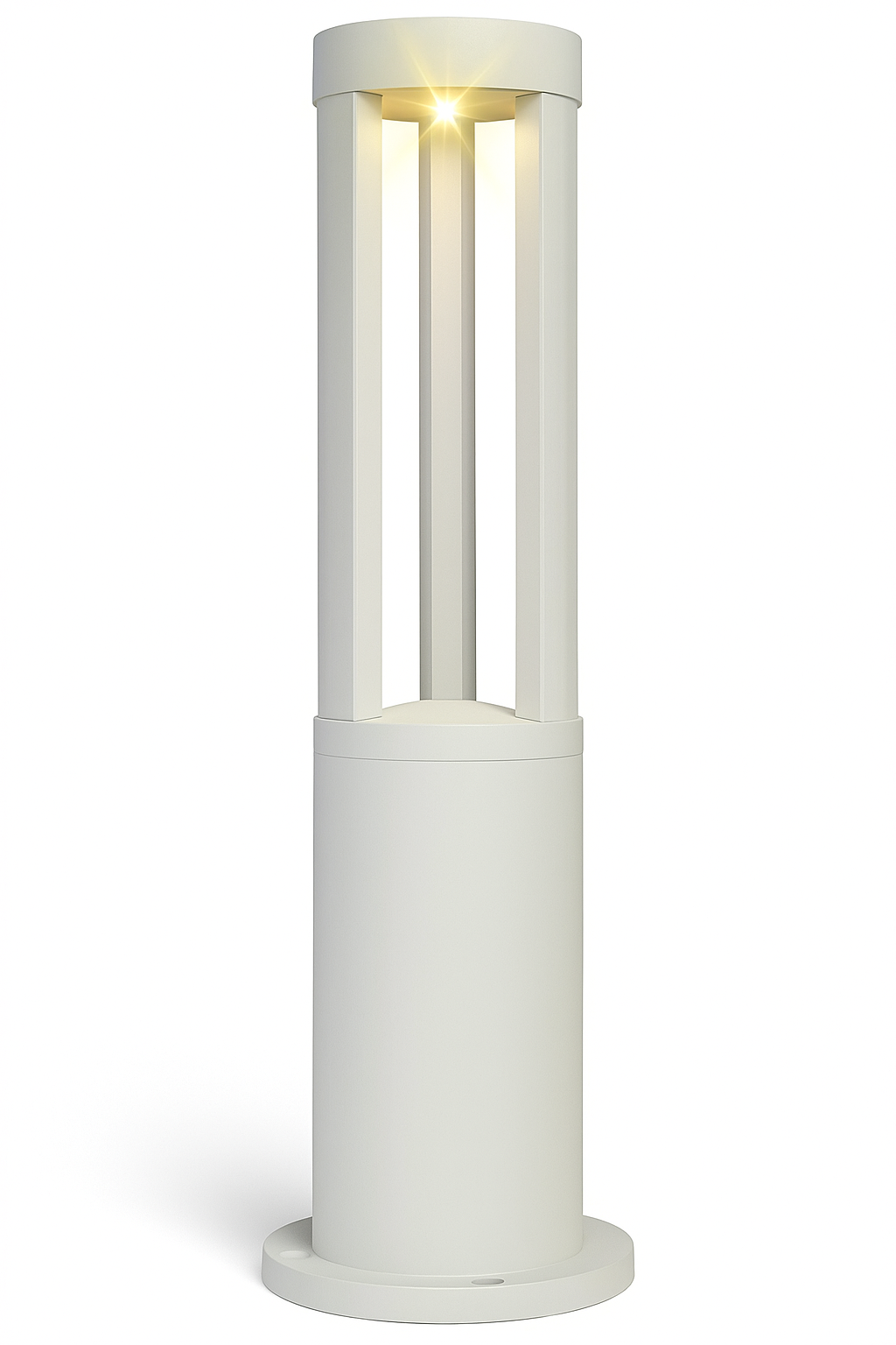 - Lampione bianco per esterno da 59cm dal design moderno ideale per l'illuminazione di percorsi pedonali, vialetti, aree verdi private, l'illuminazione del giardino, all'esterno di abitazioni, negozi, per illuminare ed arredare ambienti esterni come cortili, parchi, aree condominiali. Realizzato in alluminio con grado di protezione IP65 adatto per resistere alle intemperie e gli agenti atmosferici.