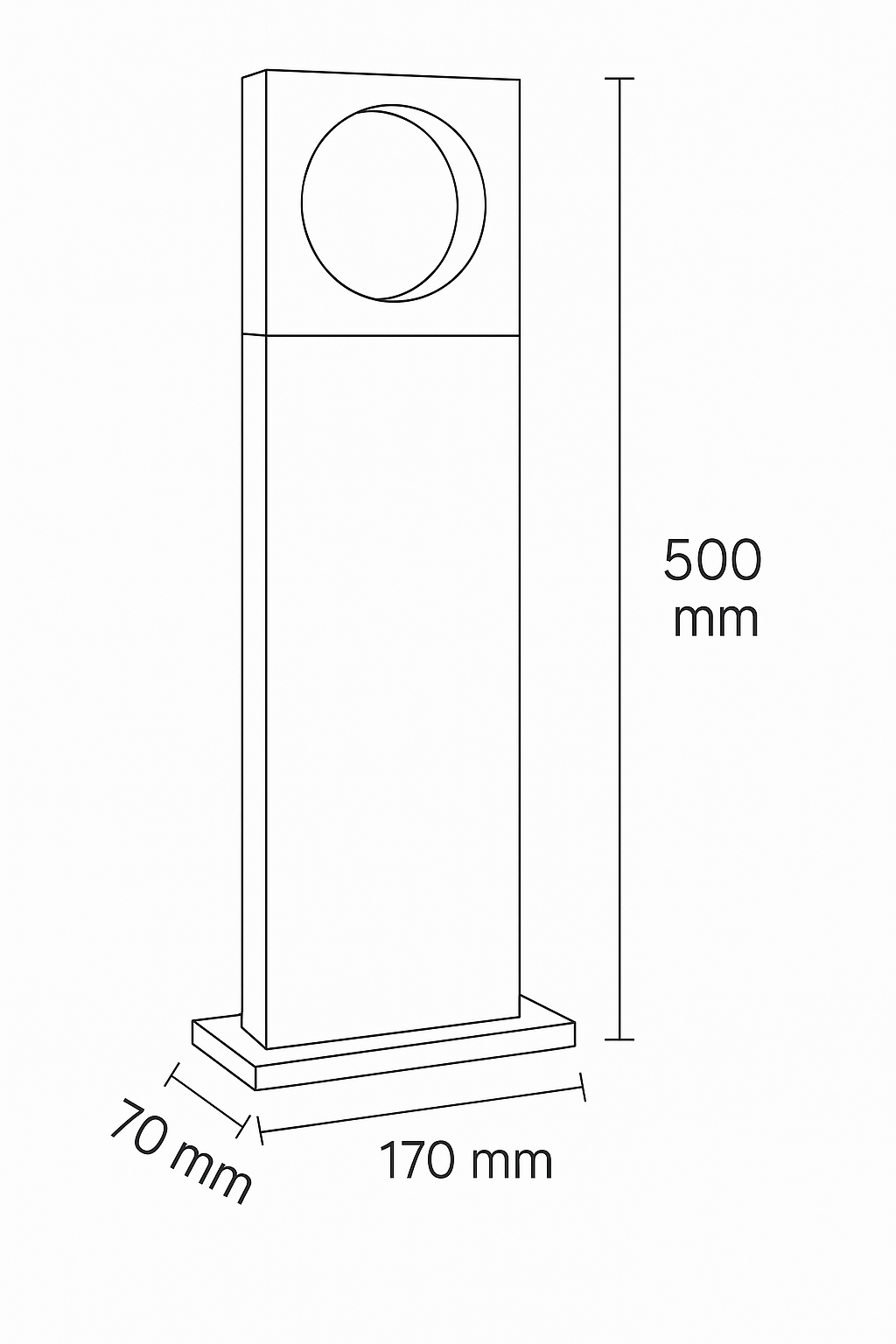 Le dimensioni compatte (altezza 500 mm, base 170x70 mm) e il peso di 1,5 kg ne facilitano l’installazione su qualsiasi superficie. È alimentata a 220–240V e non richiede dimmer o trasformatori.