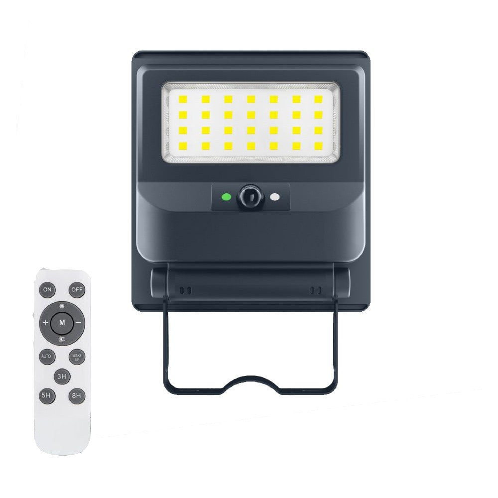 Illumina i tuoi spazi esterni in modo efficiente e senza consumi elettrici con questo faro solare da 50W equivalente, dotato di pannello fotovoltaico integrato e batteria da 4Ah. Grazie al sensore crepuscolare, si attiva automaticamente al calare del sole, garantendo luce solo quando serve. Il sensore di movimento assicura maggiore sicurezza e risparmio energetico, accendendo la luce solo al passaggio. Con 56 LED SMD ad alta luminosità, una resa di 500 lumen e luce fredda 6500K, offre visibilità ideale per giardini, pareti esterne, cortili o ingressi. Il telecomando incluso consente di gestire funzioni, timer e modalità di illuminazione con praticità. Certificato IP65, resiste a pioggia e polvere, ed è ideale per uso esterno tutto l’anno.