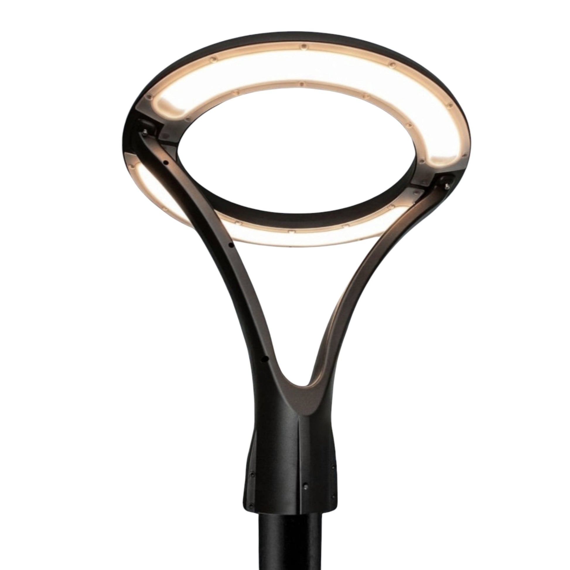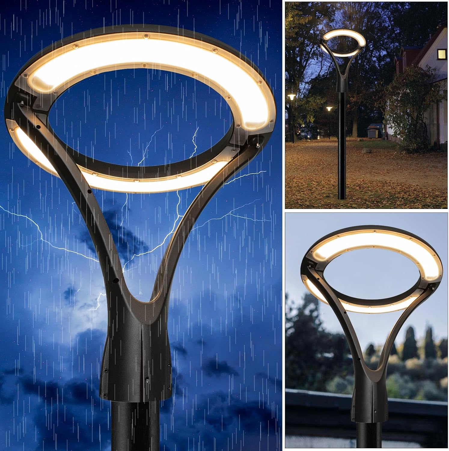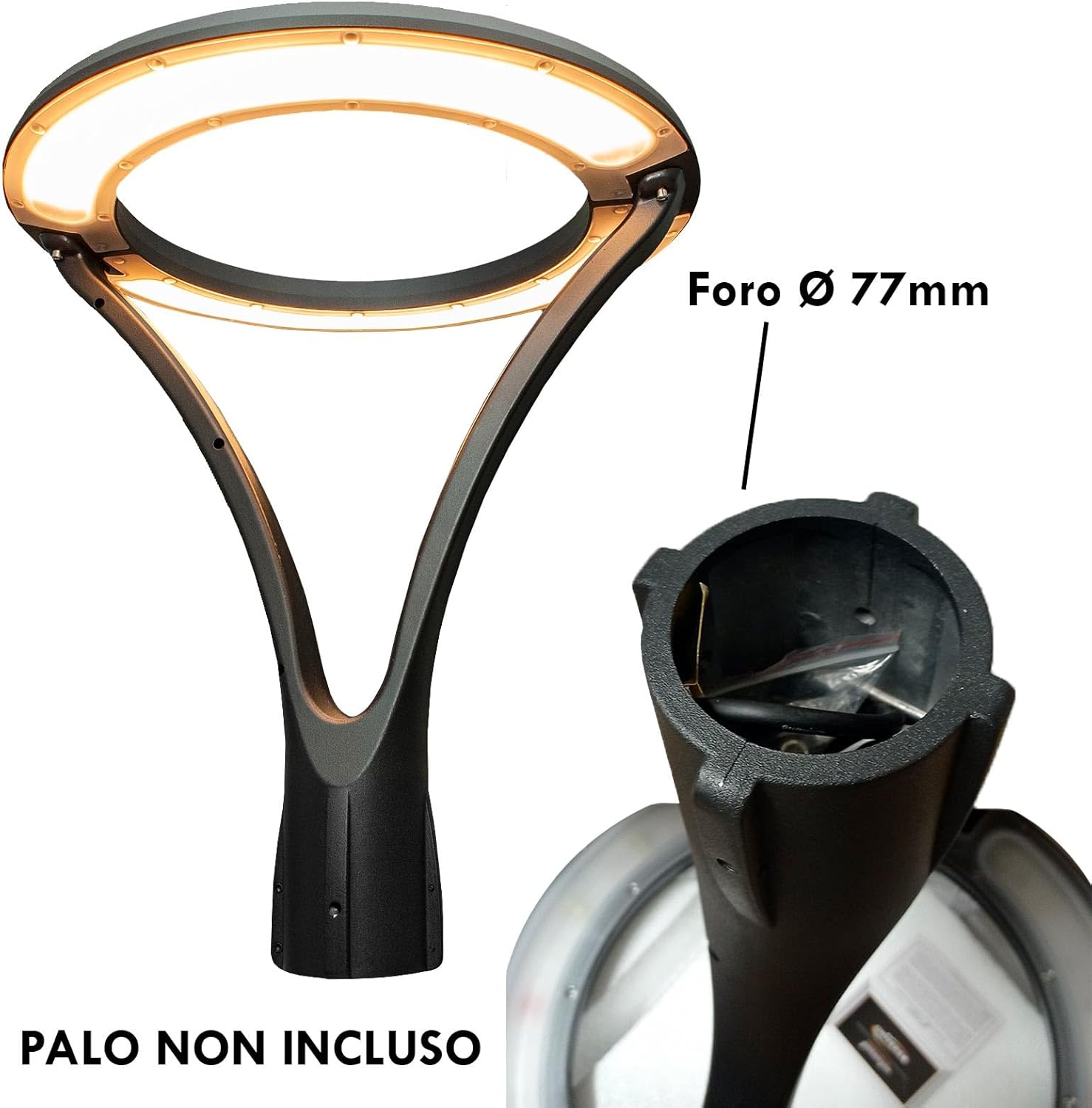 Illumina ed arreda i tuoi spazi esterni con questo elegante lampione LED da 100W. Ideale per giardini, vialetti, cortili, parchi e aree condominiali, garantisce una luce potente da 9300 lumen con un consumo ridotto. Il design circolare con luce orientata verso il basso evita l'abbagliamento, mentre il grado di protezione IP65 assicura resistenza agli agenti atmosferici. Facile da installare su pali con diametro massimo di 77mm (palo non incluso), ha una durata di 30.000 ore e si collega direttamente alla rete elettrica 230V. Perfetto per illuminare con stile e funzionalità.