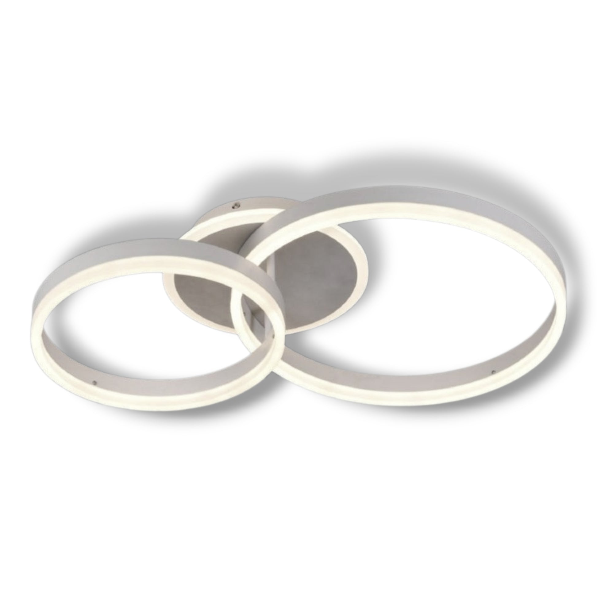 Illumina i tuoi ambienti con stile grazie a questa plafoniera LED moderna dal design a doppio cerchio intrecciato. Realizzata in alluminio e acrilico bianco, unisce estetica minimalista e alta efficienza luminosa, ideale per soggiorni, camere da letto, cucine o ingressi.