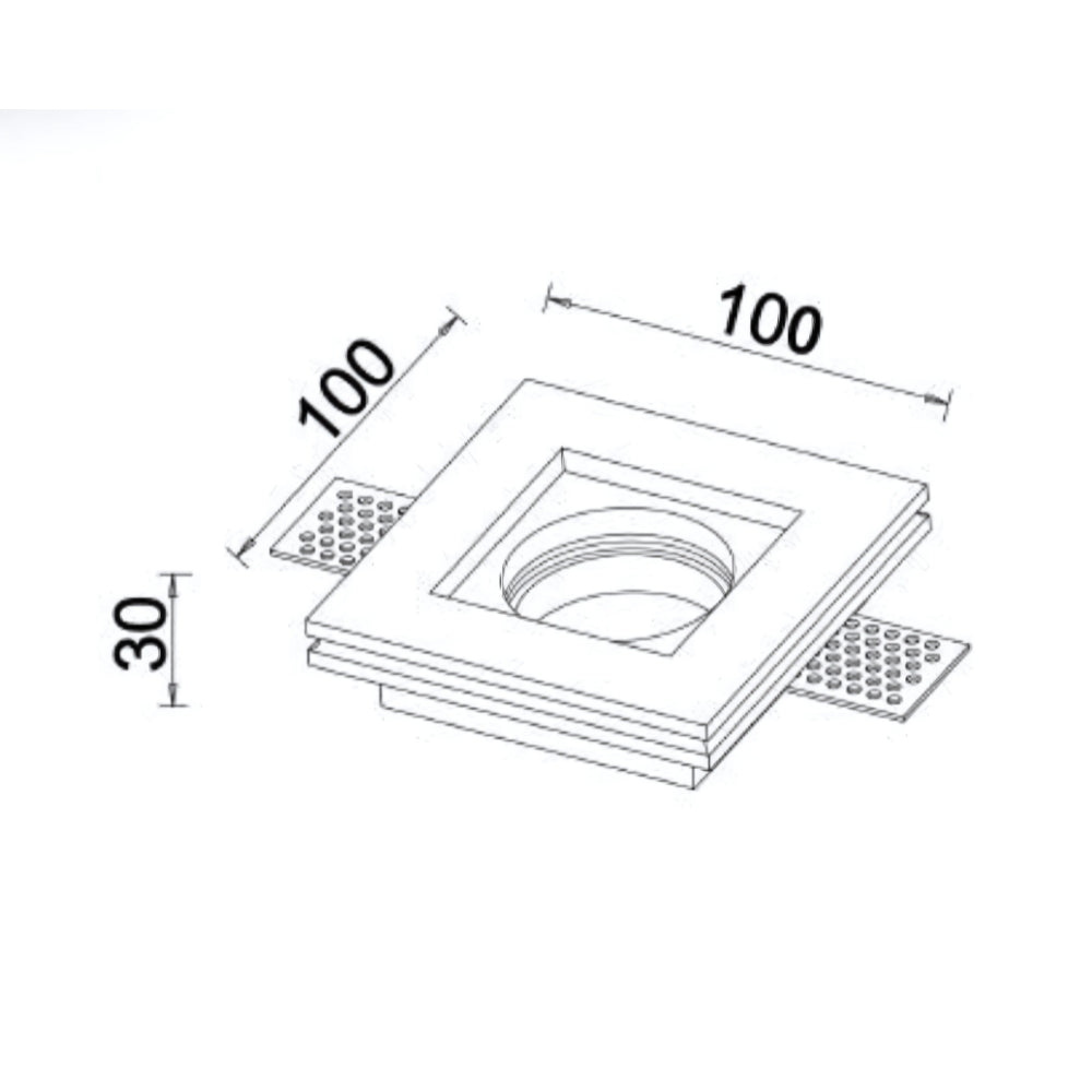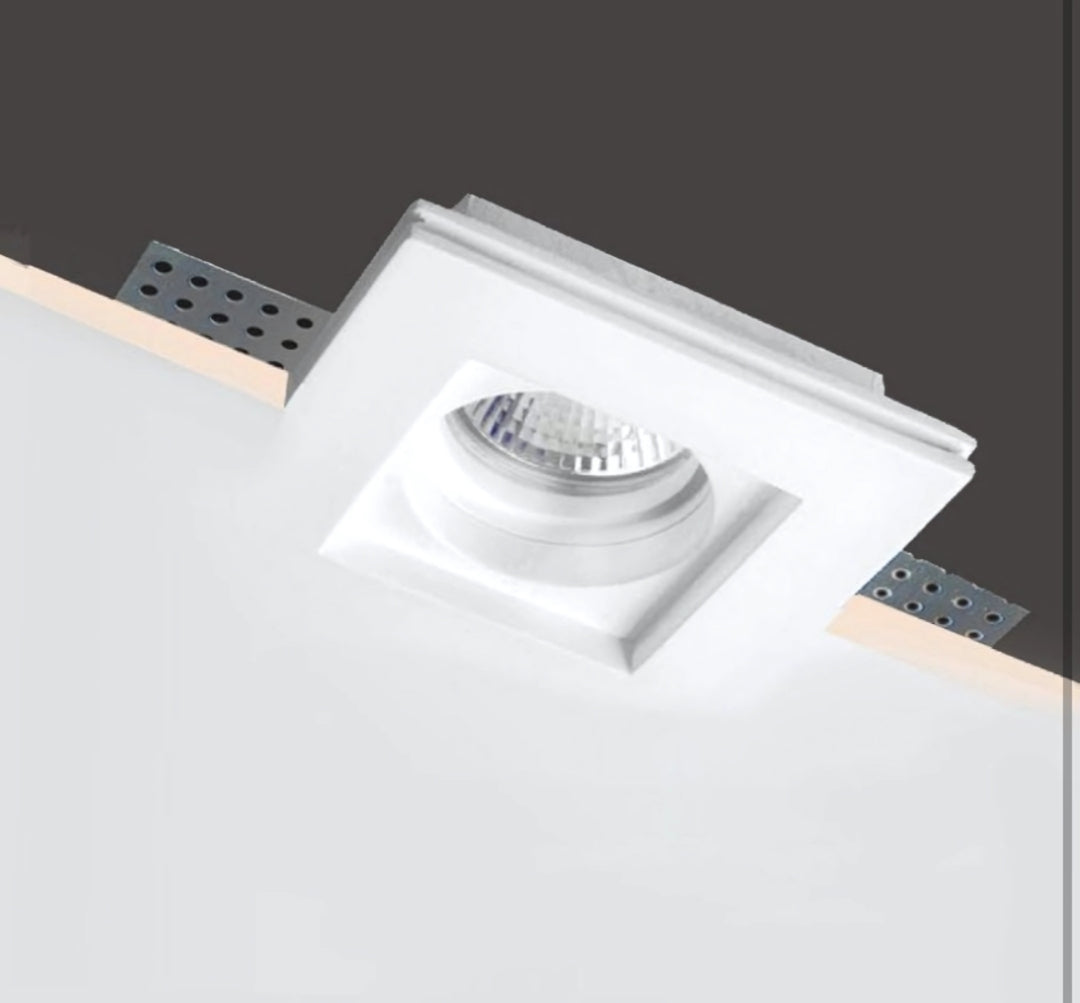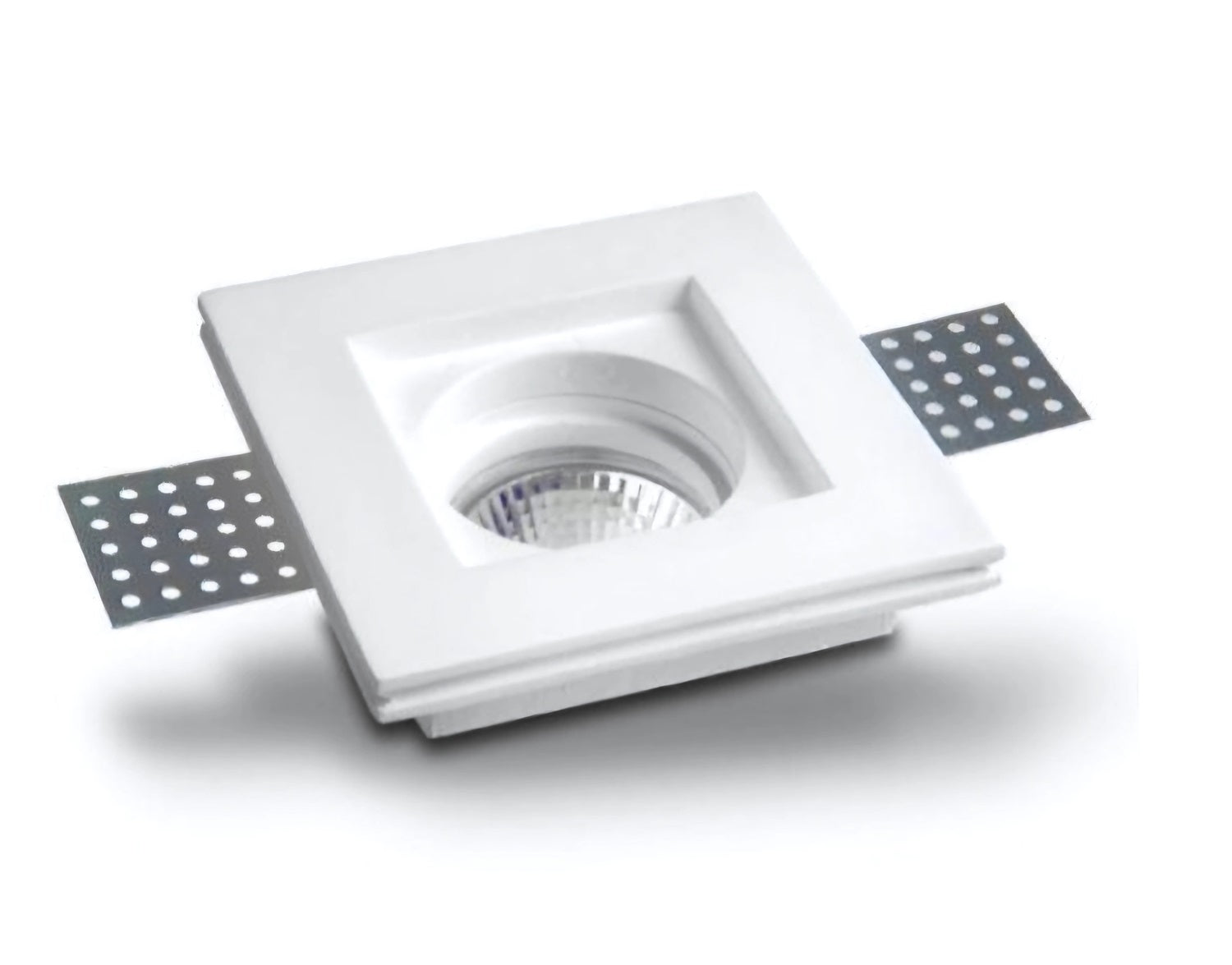 Portafaretto da Incasso in Gesso quadrato 100x100mm per Faretti GU10 Design a Scomparsa Foro Incasso 105x105mm Installazione in Cartongesso