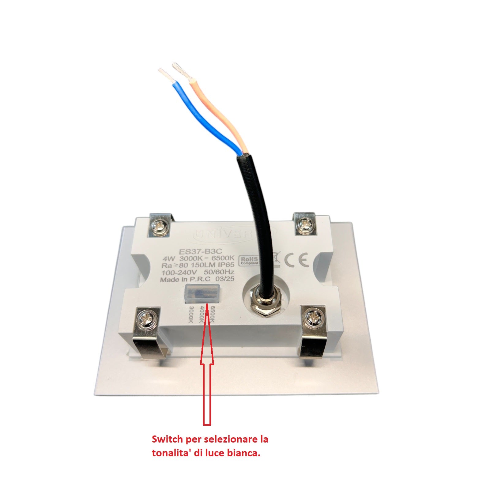 Segnapasso Faretto LED da incasso per scatola 503 IP65 4W 3 tonalità CCT Luce calda, naturale, fredda - vetro bianco per esterni e interni 220V