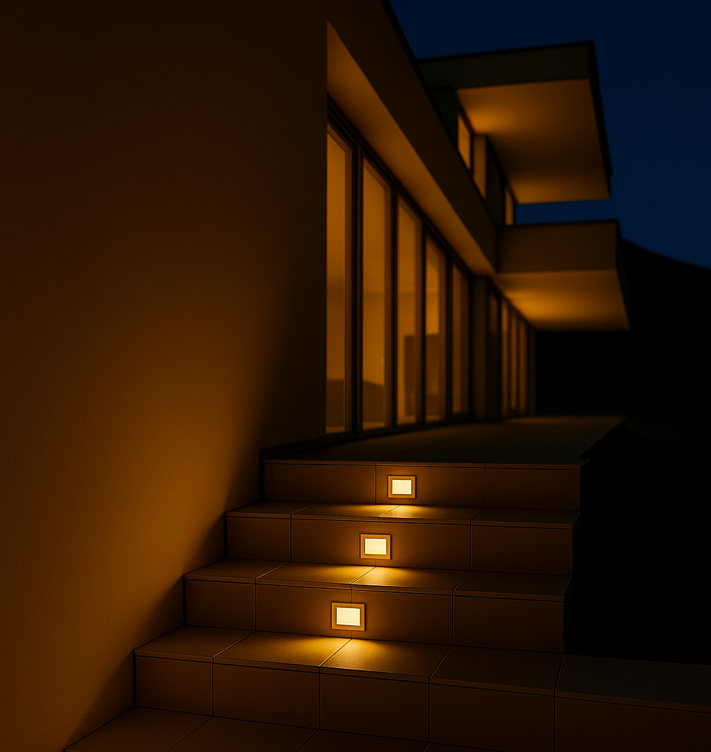 Luce fredda 6500K: più intensa e brillante, pensata per aumentare la visibilità in spazi esterni, come porticati, vialetti o facciate.