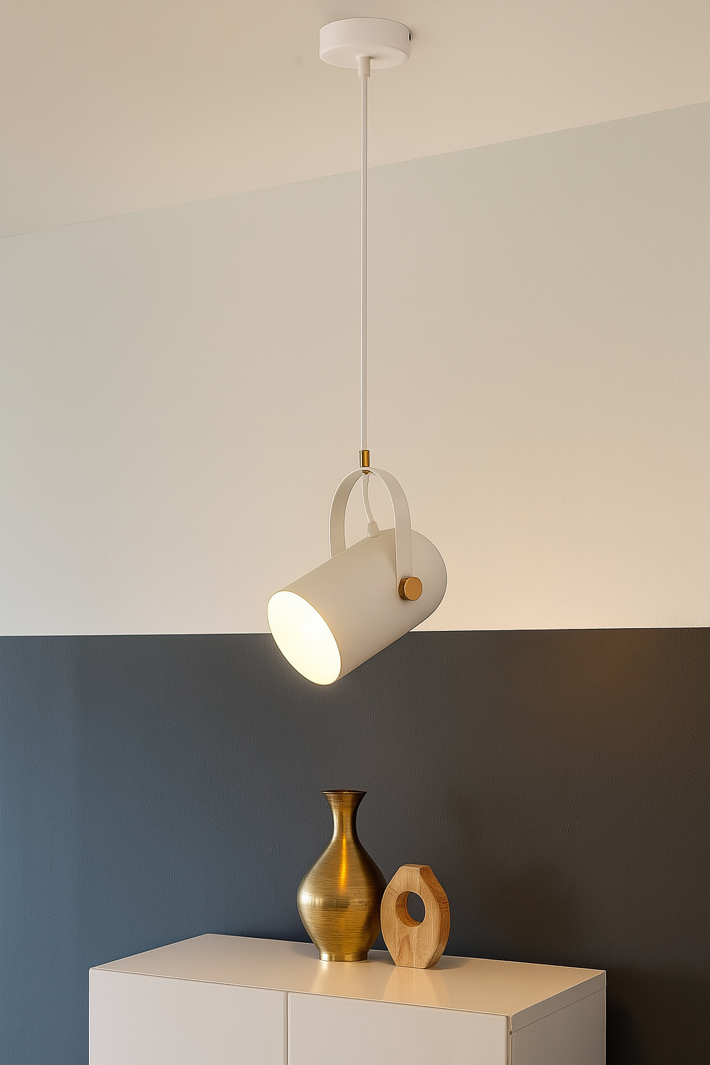 Illumina i tuoi spazi con eleganza e carattere grazie a questa lampada a sospensione in metallo, dal design moderno e minimale. Disponibile in due varianti – bianco opaco o nero opaco – è impreziosita da raffinati dettagli dorati che aggiungono un tocco di stile a ogni ambiente.