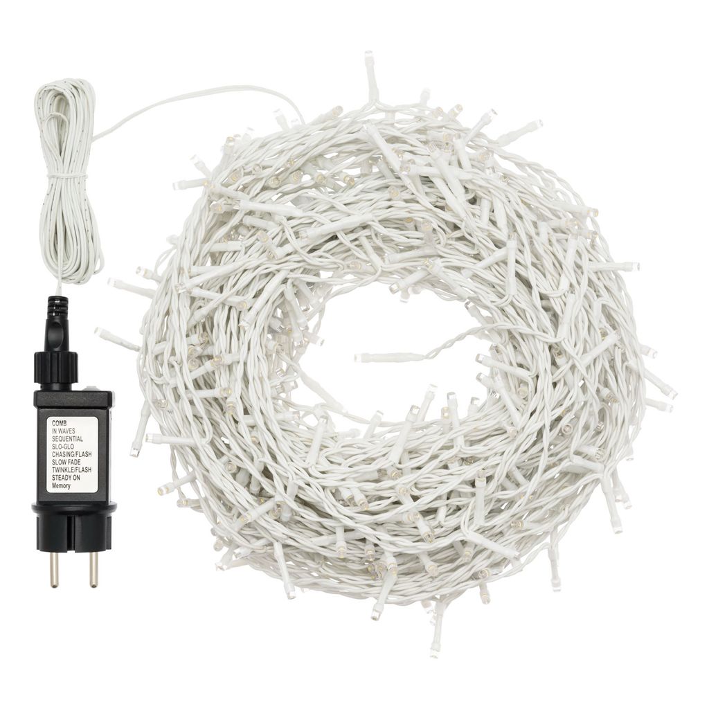 Il cavo di alimentazione da 3 metri, completamente bianco, si integra in modo elegante e discreto con ogni ambiente. Tutti i LED funzionano in modalità intermittente, creando un effetto scintillante suggestivo e festoso.