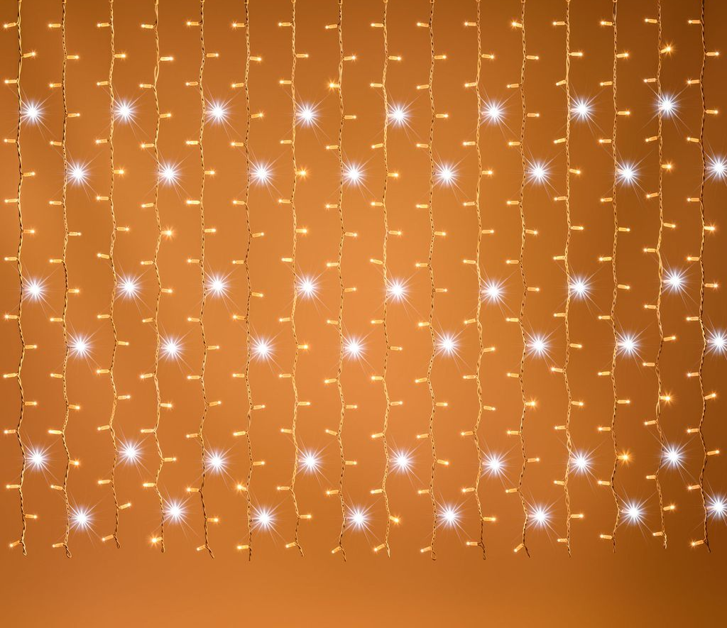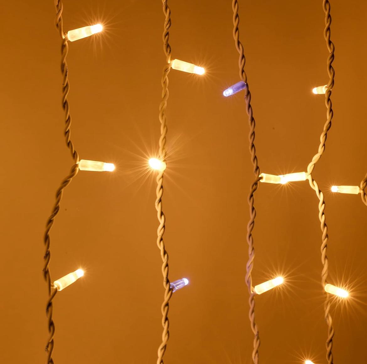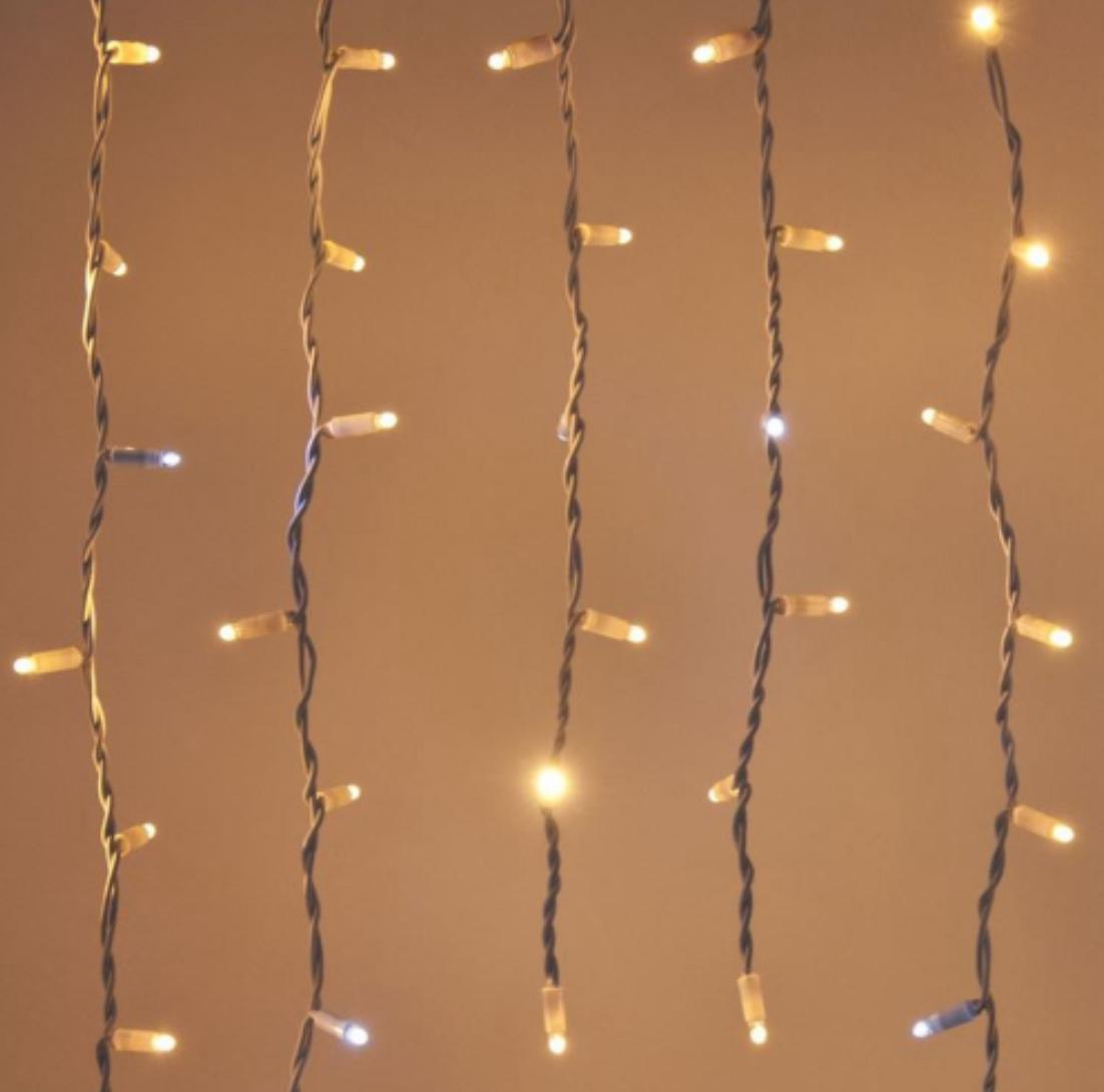 Tenda Luminosa Natalizia 3x0,8m 128 LED Maxiled – 100 Luce Calda + 28 Flash Fredda, Prolungabile fino a 12m, 220V IP44 con Spina Schuko per Esterno